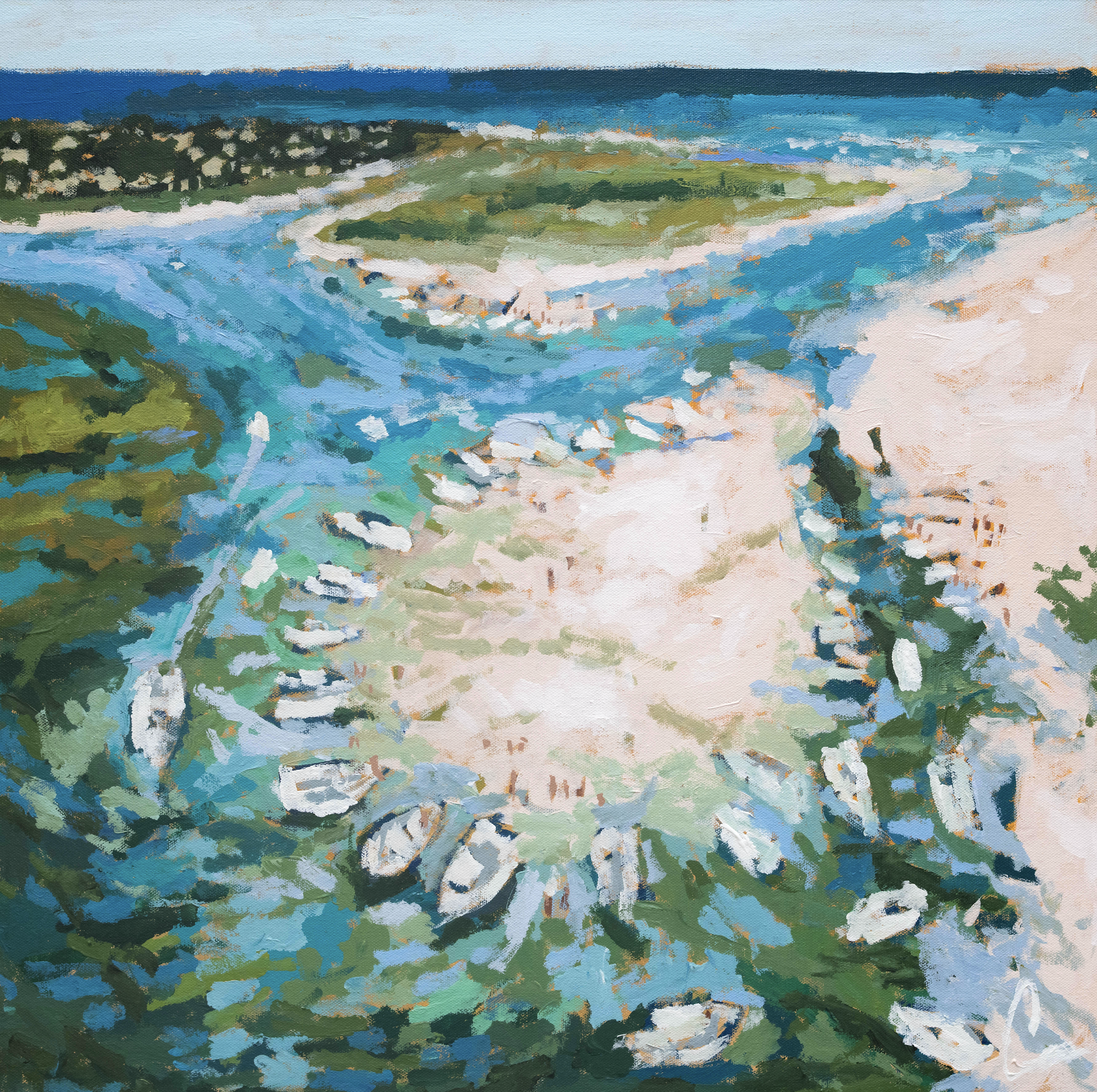 My 'A Day in the Life' Series was created to celebrate life through color and brush stroke. My goal with this series was to elicit joy and highlight the movement and happiness of soaking every ounce of life out of life. This movement can be found throughout the collection through the depiction of gatherings, beach days, fishing, surfing, and in the grasses being blown by the wind. I hope you love the collection. Thank you for stopping by!