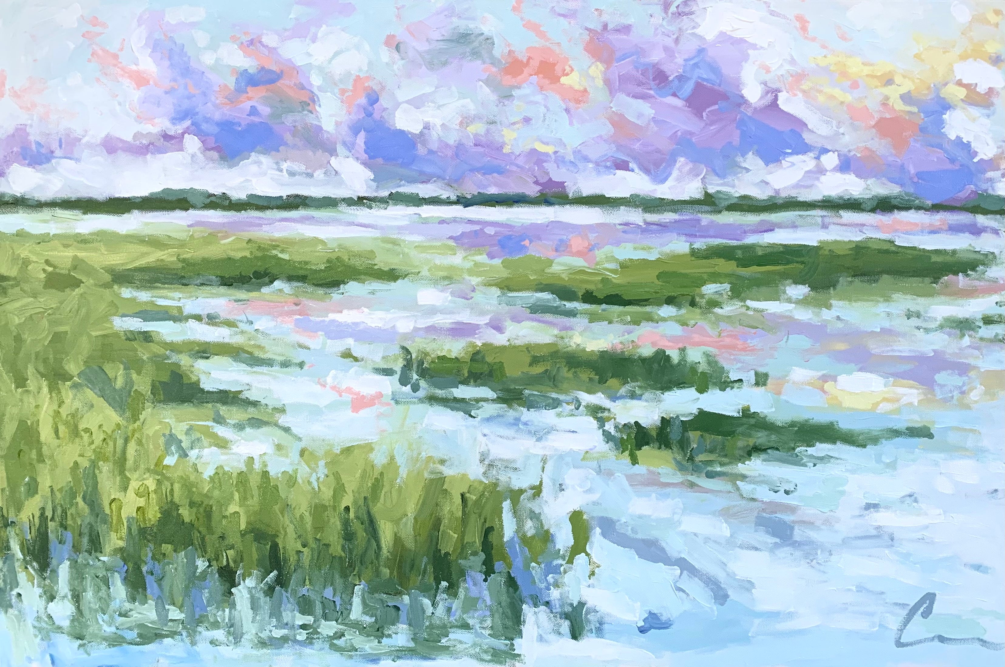 This is a 36x24 acrylic on canvas with a 7/8" depth. Framing is available as an a la carte option for an additional $340. Please email me within 24 hours indicating color (warm silver, natural maple, dark brown wood, gold) and style (floater frame, flat frame). Turnaround time for custom framing is ~3 weeks. Orders placed as-is will ship within 7-10 business days.