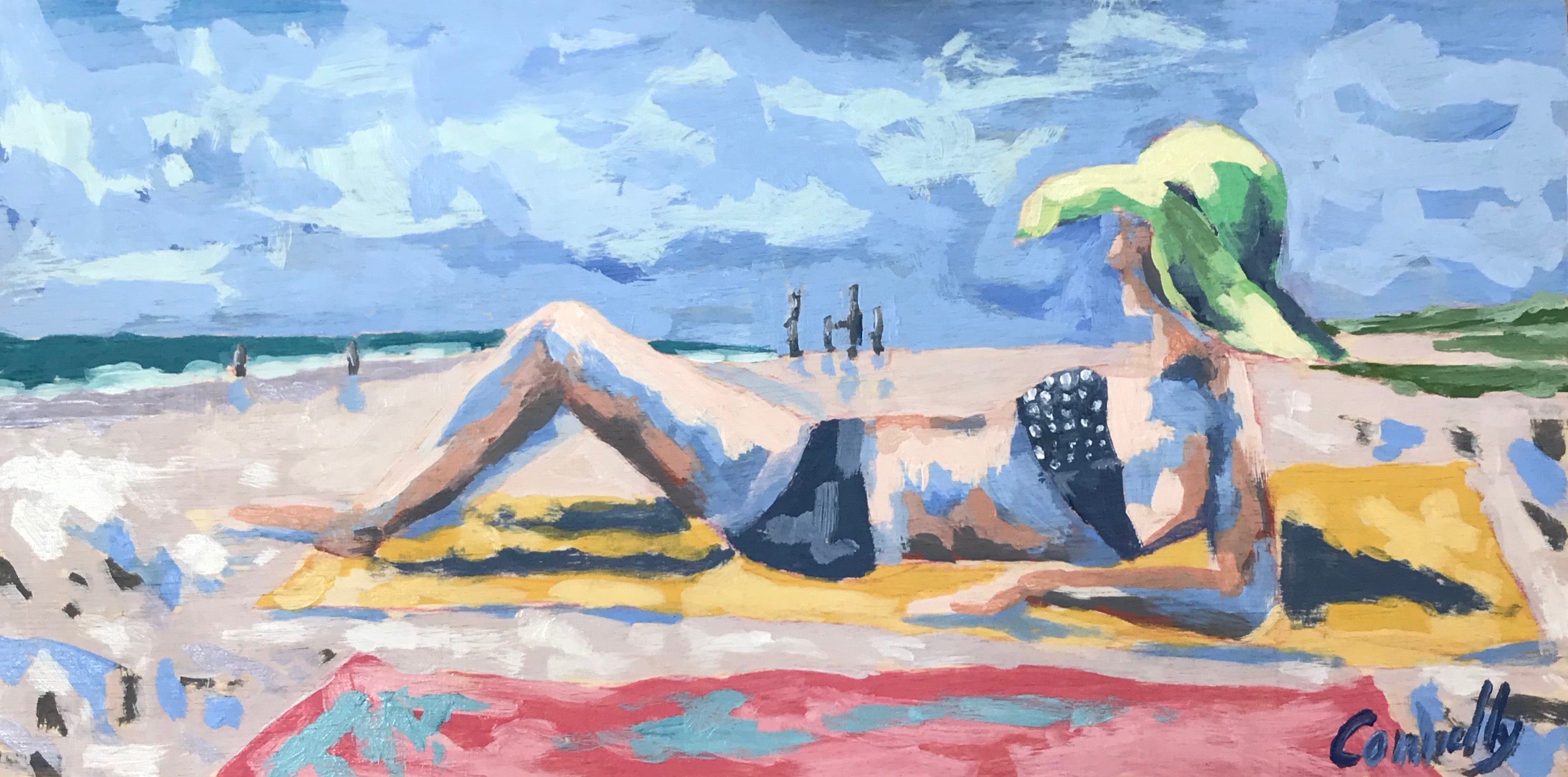 'Catherine' is painted on birch panel with a 5/8" depth painted white so it can be displayed with or without a frame. Framing is available in wide flat wood with a gold leaf with or without a thin linen mat, white, or silver finish, or in a thin floater frame with a gold, white, silver, or natural maple finish. The wide frame adds ~3.5" to each side, and the float adds ~1.5" to each side.