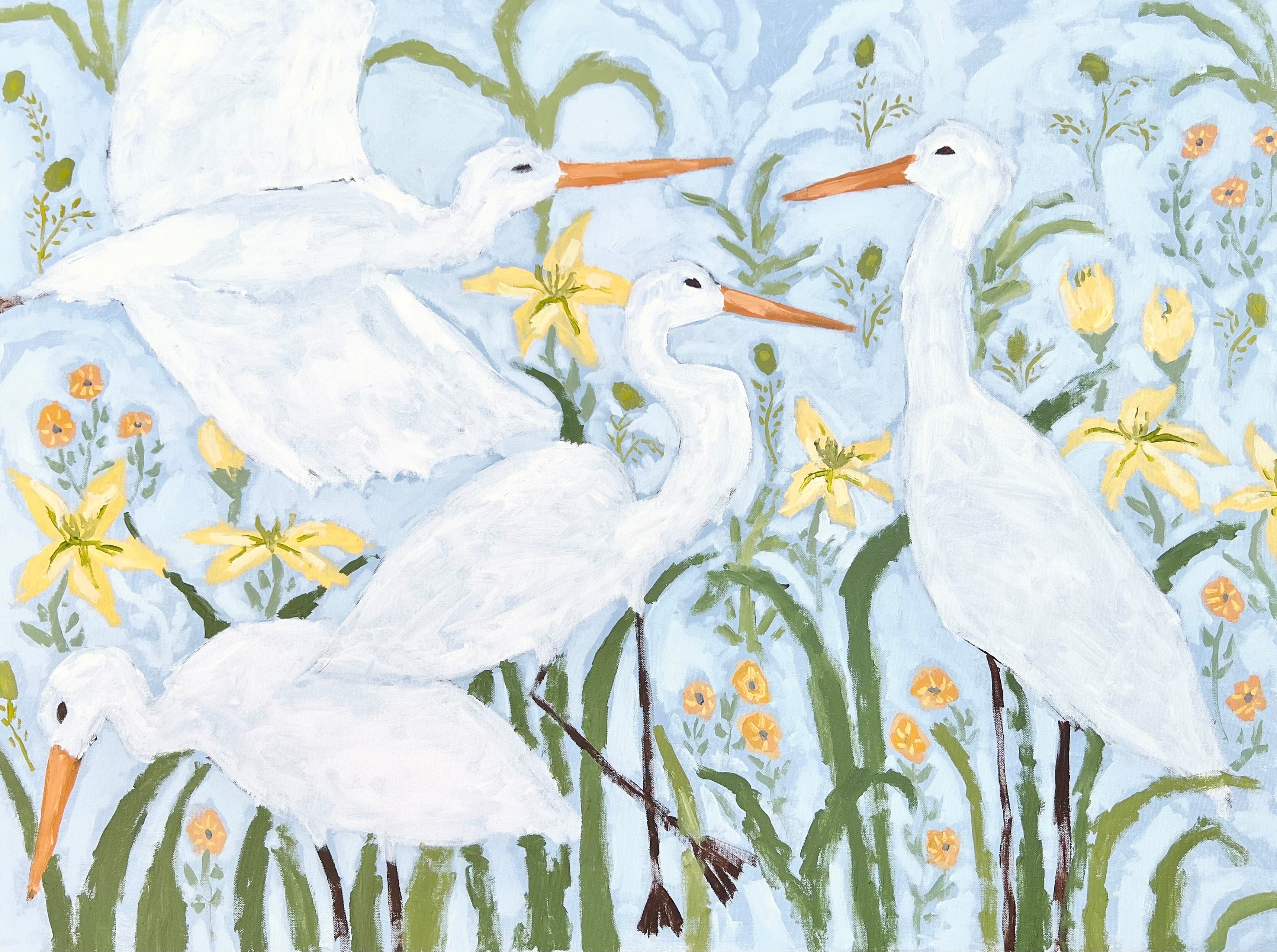 This is a 40x30 acrylic on canvas that comes unframed. Framing is available as an a la carte option for an additional $360. Please email me within 24 hours indicating color (warm silver, natural maple, dark brown wood, gold) and style (floater frame, flat frame). Turnaround time for custom framing is ~3 weeks. Orders placed as-is will ship within 7-10 business days. If shipping internationally, please see Shipping FAQ. Thank you so much for your interest in my work!