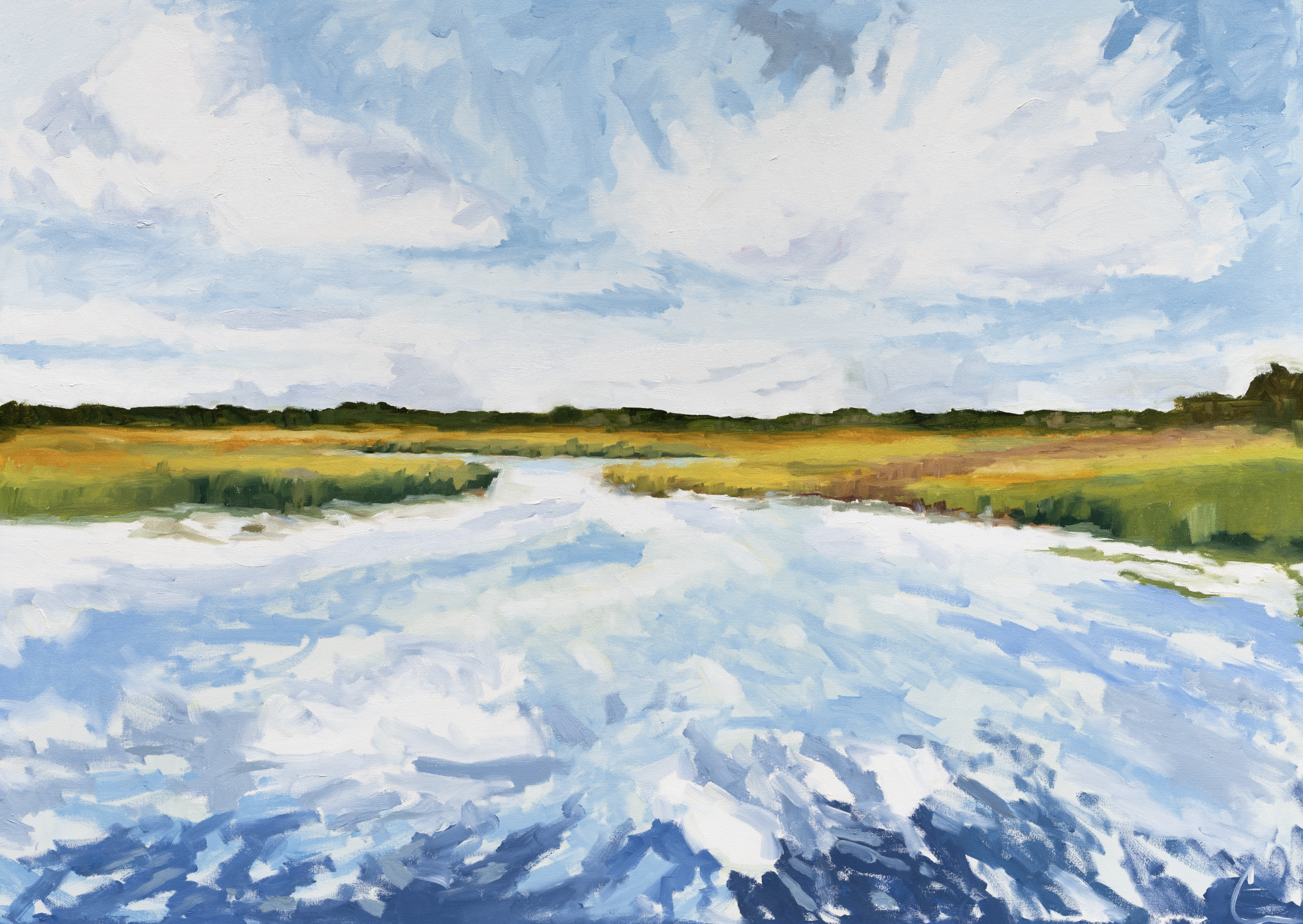 This is a 48x36 oil on canvas. Orders will ship within 7-14 business days. Framing is available as an a la carte option for an additional $400. Please email me within 24 hours indicating color (warm silver, natural maple, dark brown wood, gold) and style (floater frame, wider flat frame). Turnaround time for custom framing is ~3 weeks. If shipping internationally, please see Shipping FAQ. Thank you so much for your interest in my work!