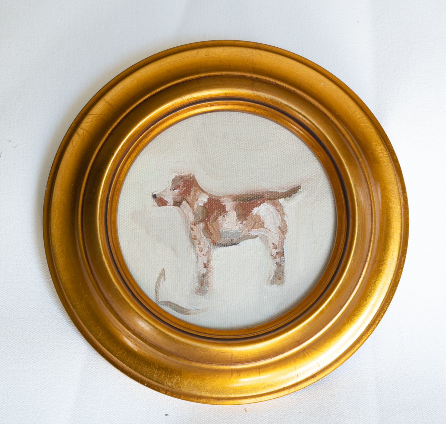 This is a 5x5" oil on canvas. Framing is included and adds around 1-1.5" to each side.