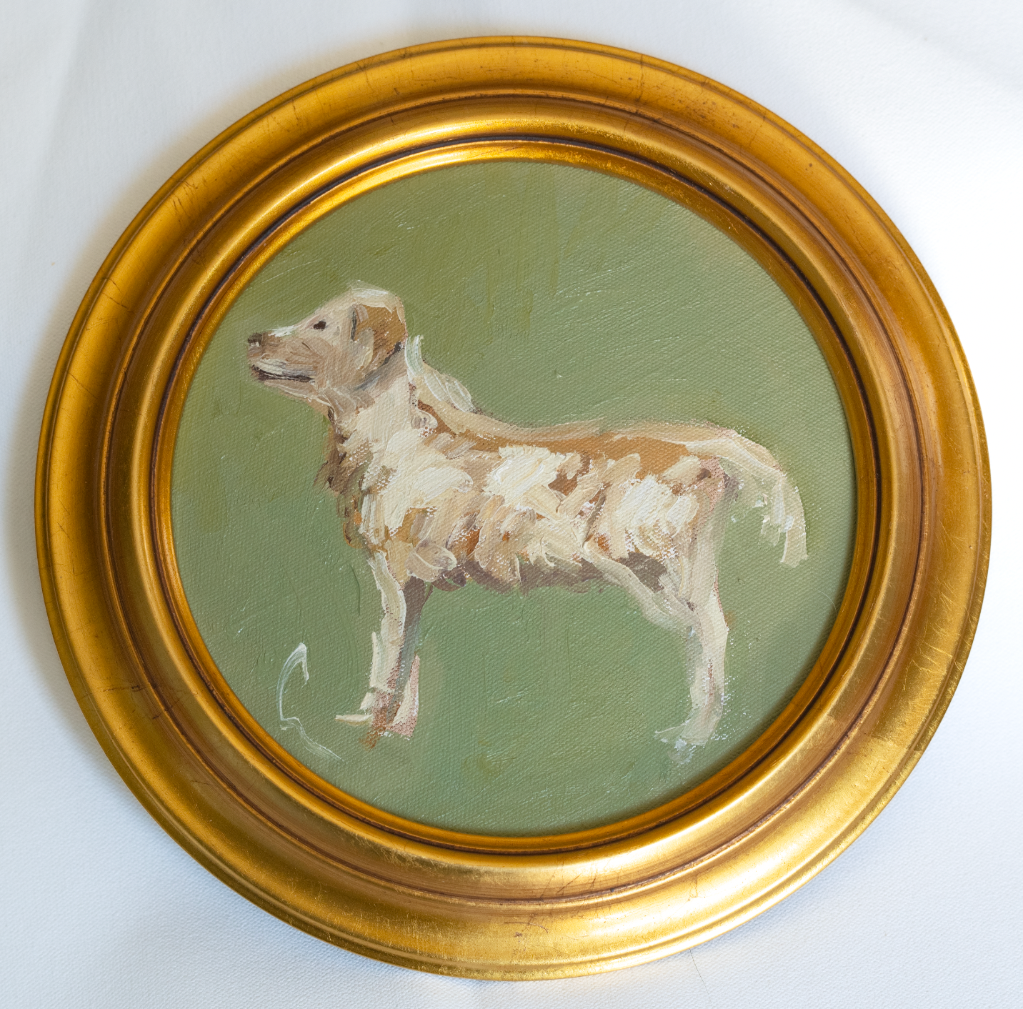 This is a 8x8" oil on canvas. Framing is included and adds around 1-1.5" to each side.