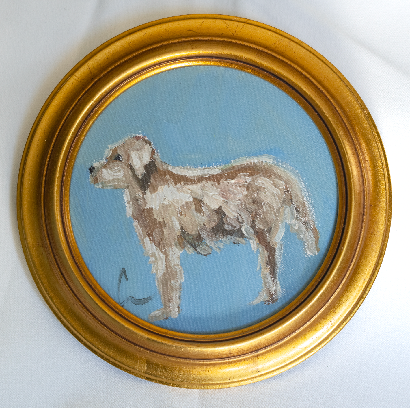 This is a 8x8" oil on canvas. Framing is included and adds around 1-1.5" to each side.