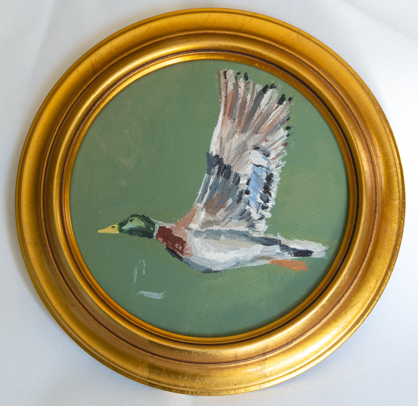 This is a 8x8" oil on canvas. Framing is included and adds around 1-1.5" to each side.