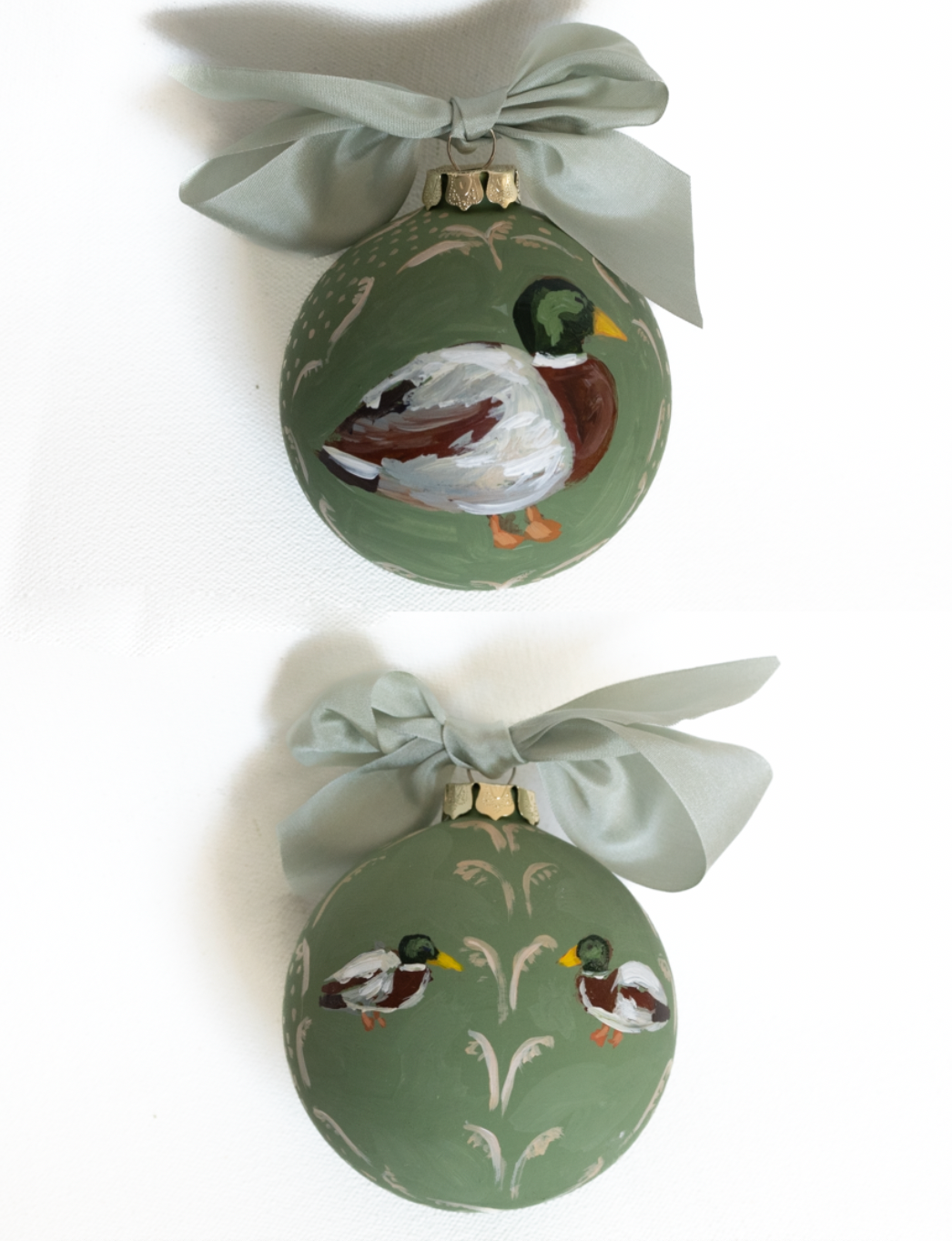 This is a 3x3" acrylic on ceramic ornament that comes varnished in gloss and adorned with a silk ribbon. Ornaments come in individual boxes for safe keeping.