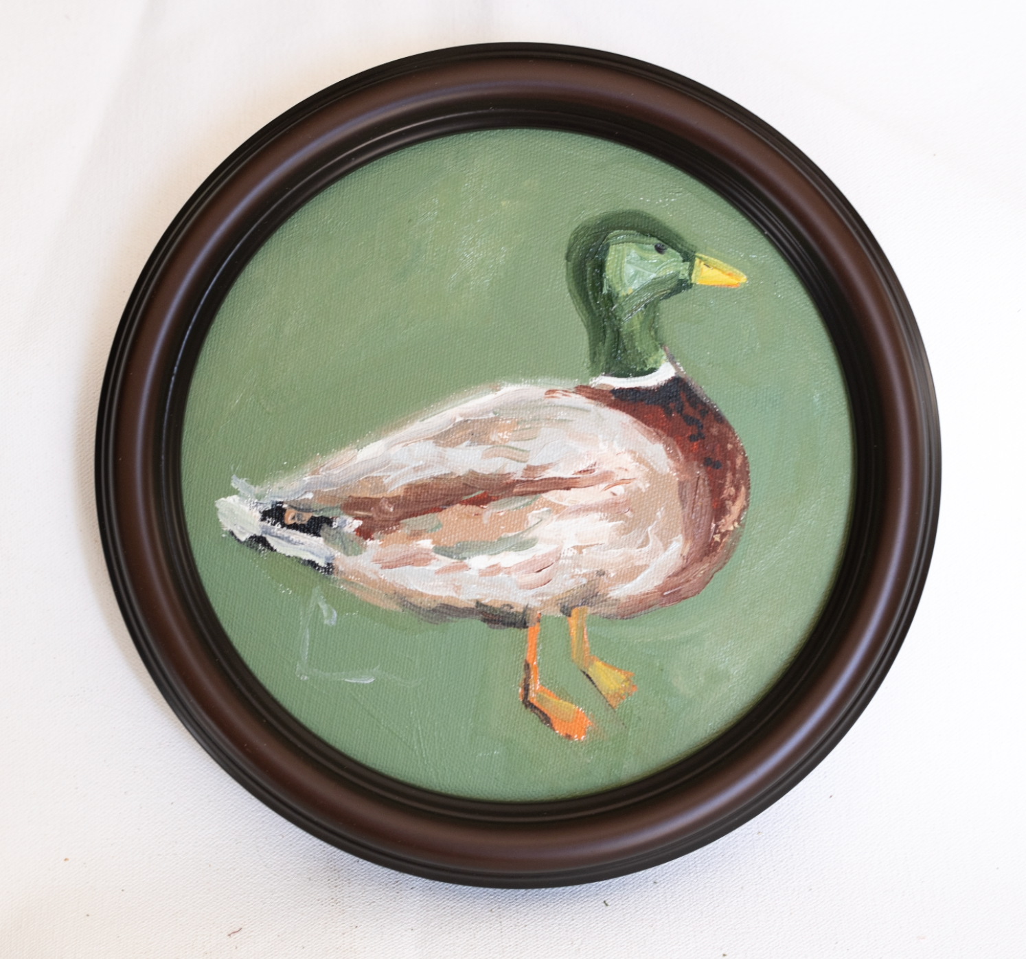This is a 8x8" oil on canvas. Framing is included and adds around 1-1.5" to each side.