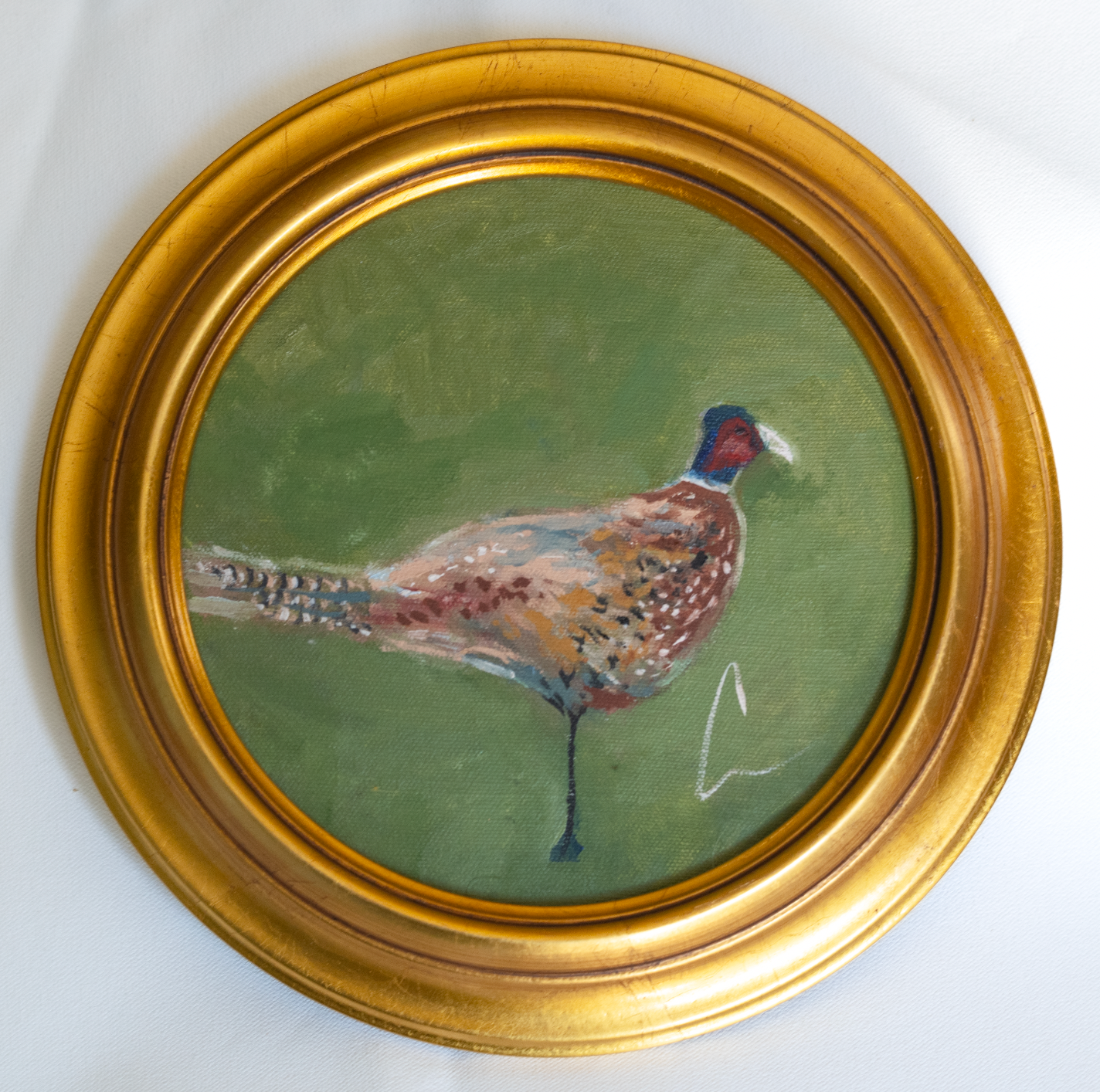 This is a 8x8" oil on canvas. Framing is included and adds around 1-1.5" to each side.