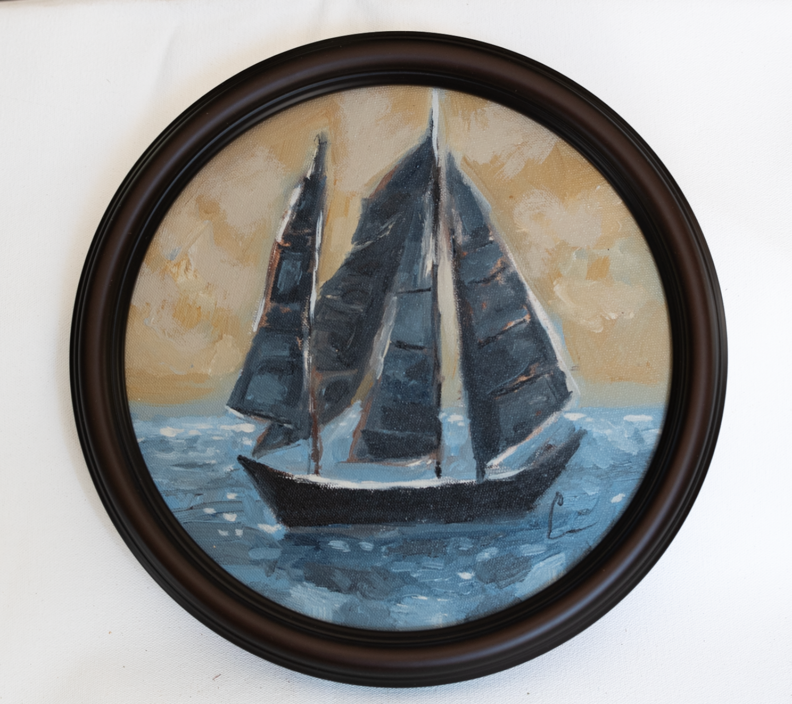 This is a 10x10" oil on canvas. Framing is included and adds around 1-1.5" to each side.