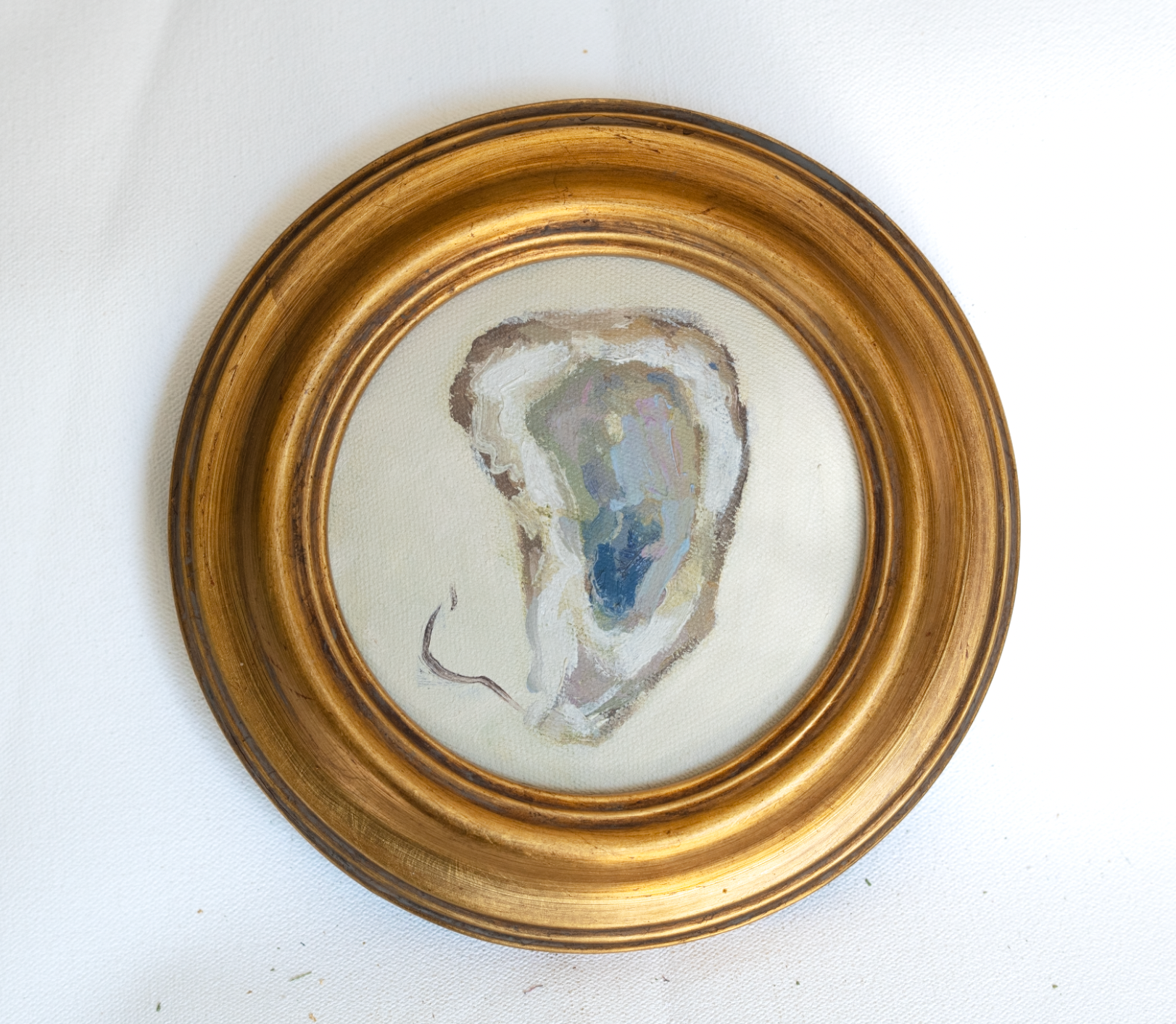 This is a 5x5" oil on canvas. Framing is included and adds around 1-1.5" to each side.