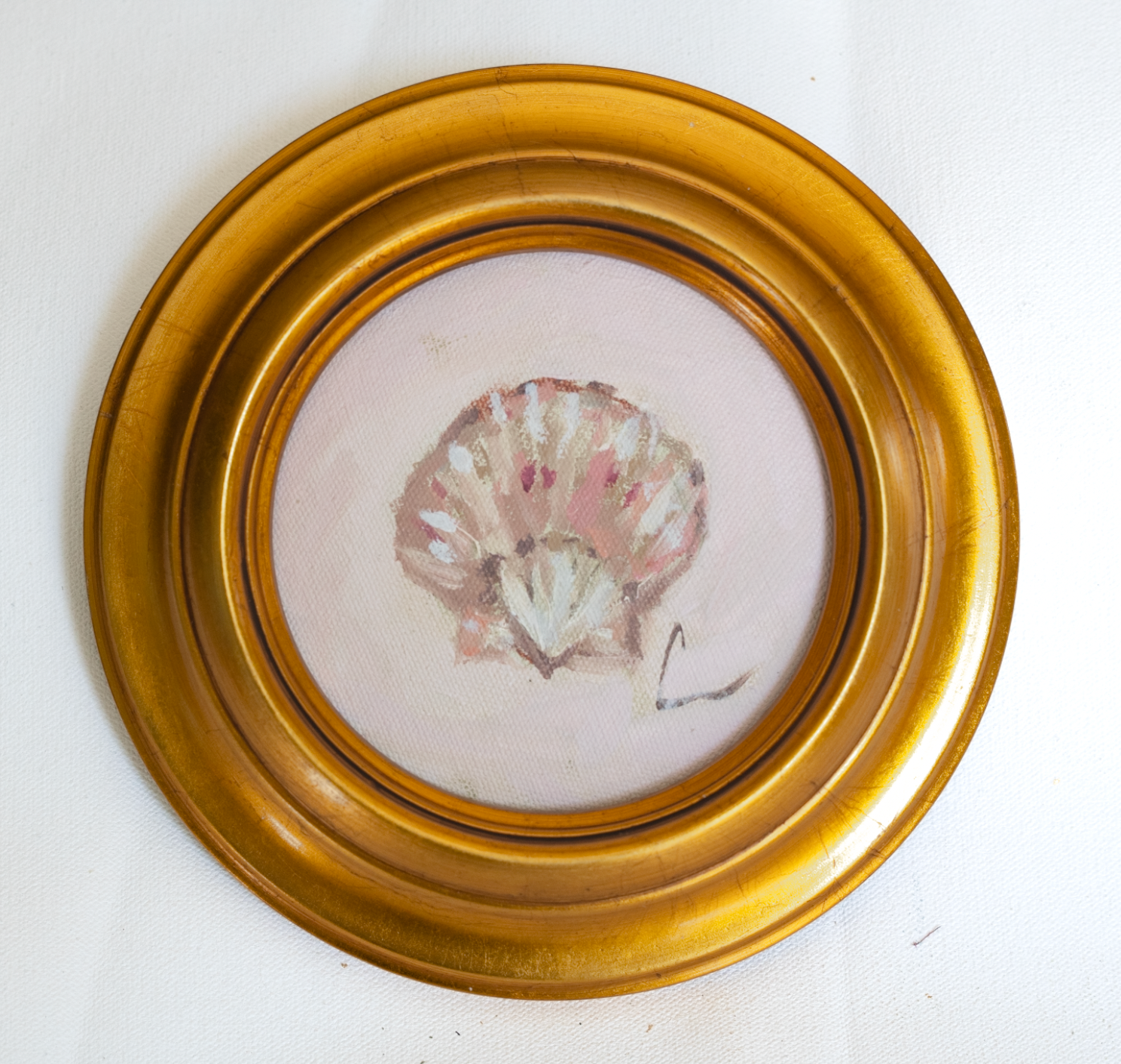 This is a 5x5" oil on canvas. Framing is included and adds around 1-1.5" to each side.