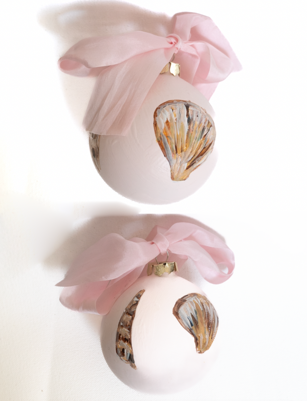 This is a 3x3" acrylic on ceramic ornament that comes varnished in gloss and adorned with a silk ribbon. Ornaments come in individual boxes for safe keeping.