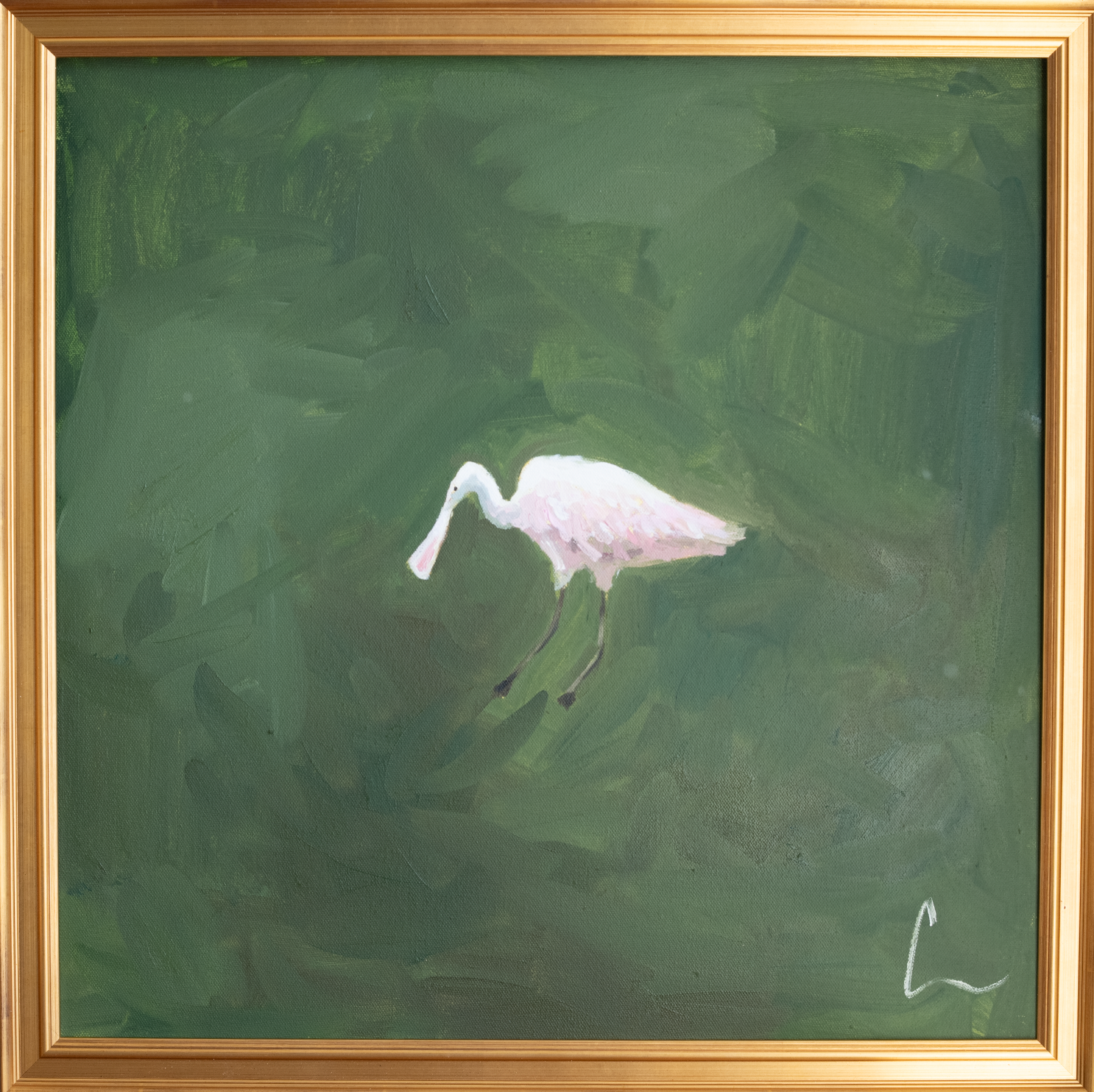 Spoonbill in Green II 20x20 (Comes Framed)