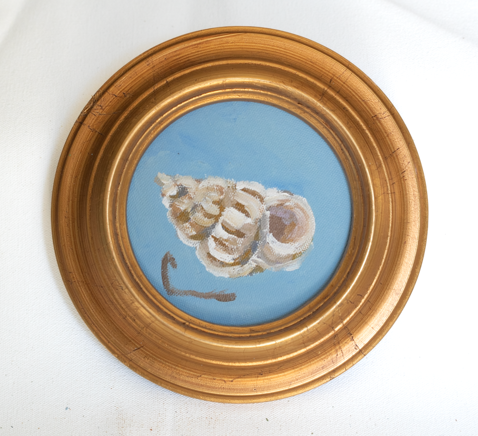 This is a 5x5" oil on canvas. Framing is included and adds around 1-1.5" to each side.