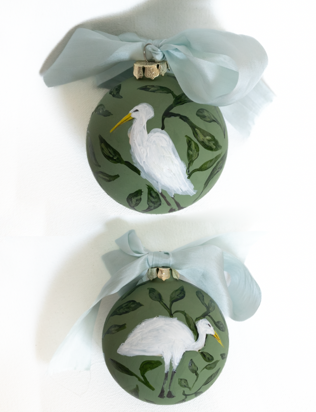 This is a 3x3" acrylic on ceramic ornament that comes varnished in gloss and adorned with a silk ribbon. Ornaments come in individual boxes for safe keeping.