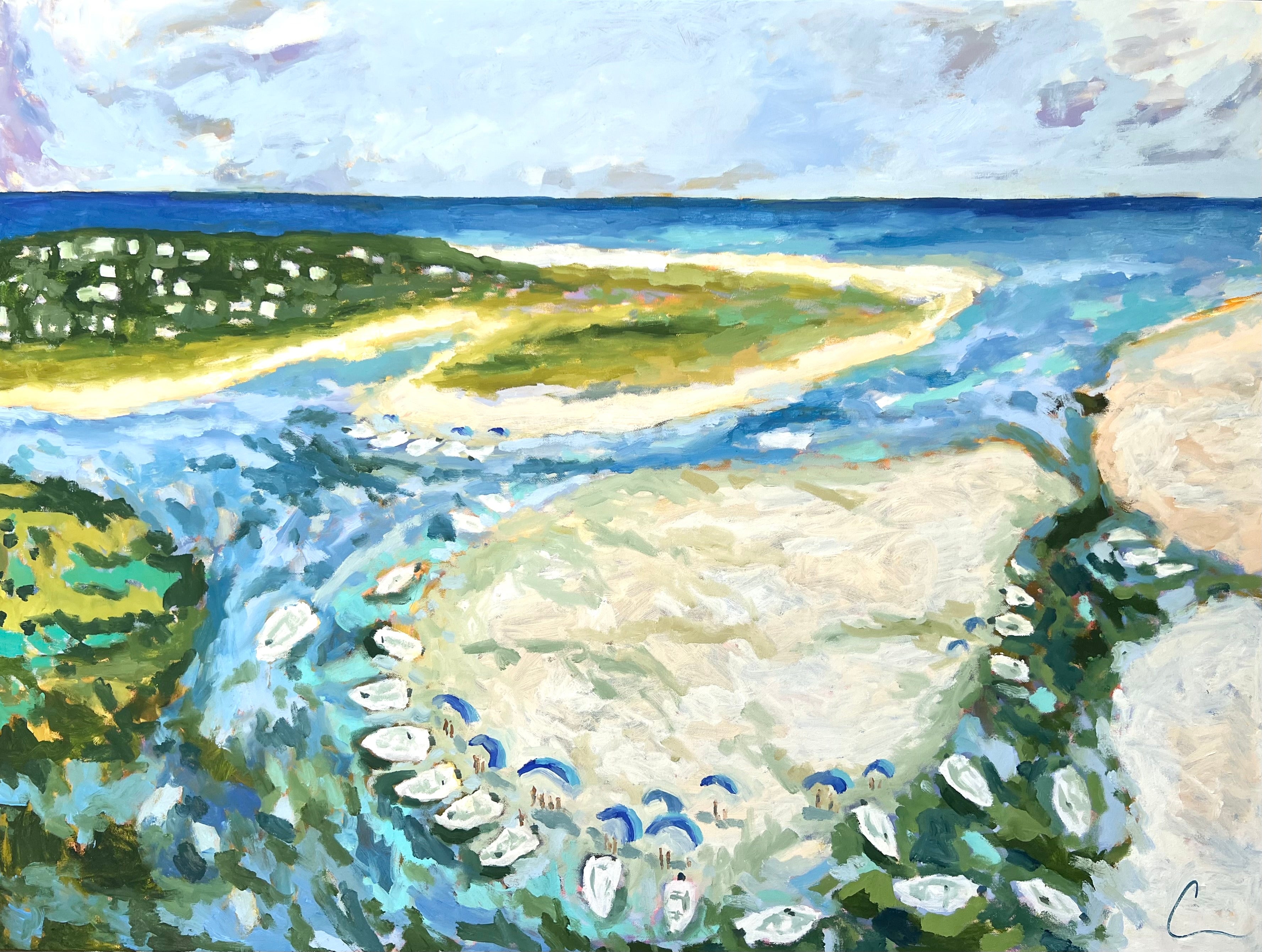 This is a 48x36 oil on canvas. Orders will ship within 7-14 business days. Framing is available as an a la carte option for an additional $450. Please email me within 24 hours indicating color (warm silver, natural maple, dark brown wood, gold) and style (floater frame, wider flat frame). Turnaround time for custom framing is ~3 weeks. If shipping internationally, please see Shipping FAQ. Thank you so much for your interest in my work!