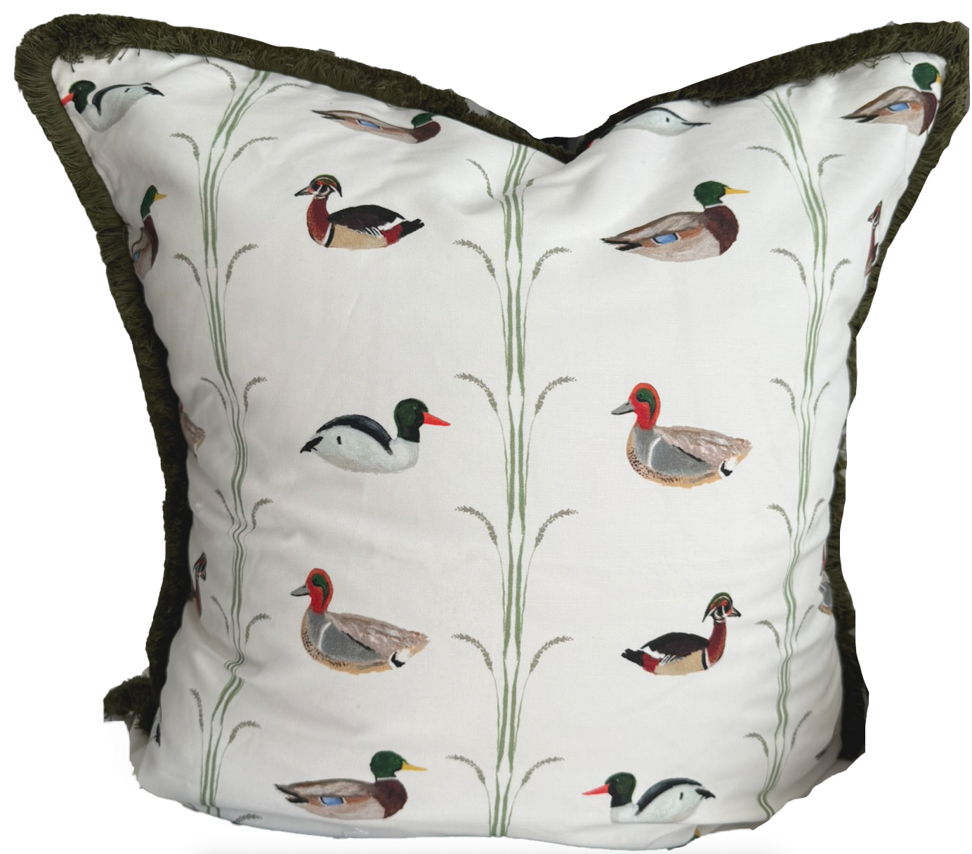 24x24 Ducks Pillow Cover- Green Fringe