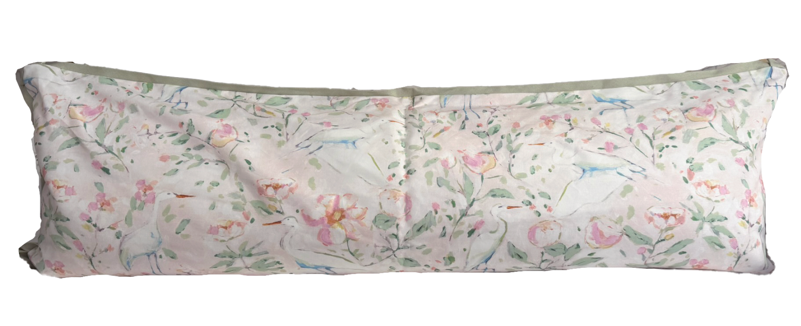 Large Lumbar Egrets Pillow Cover- Sage Flange