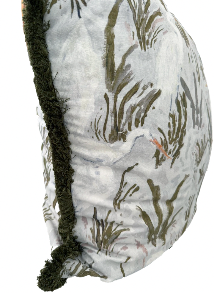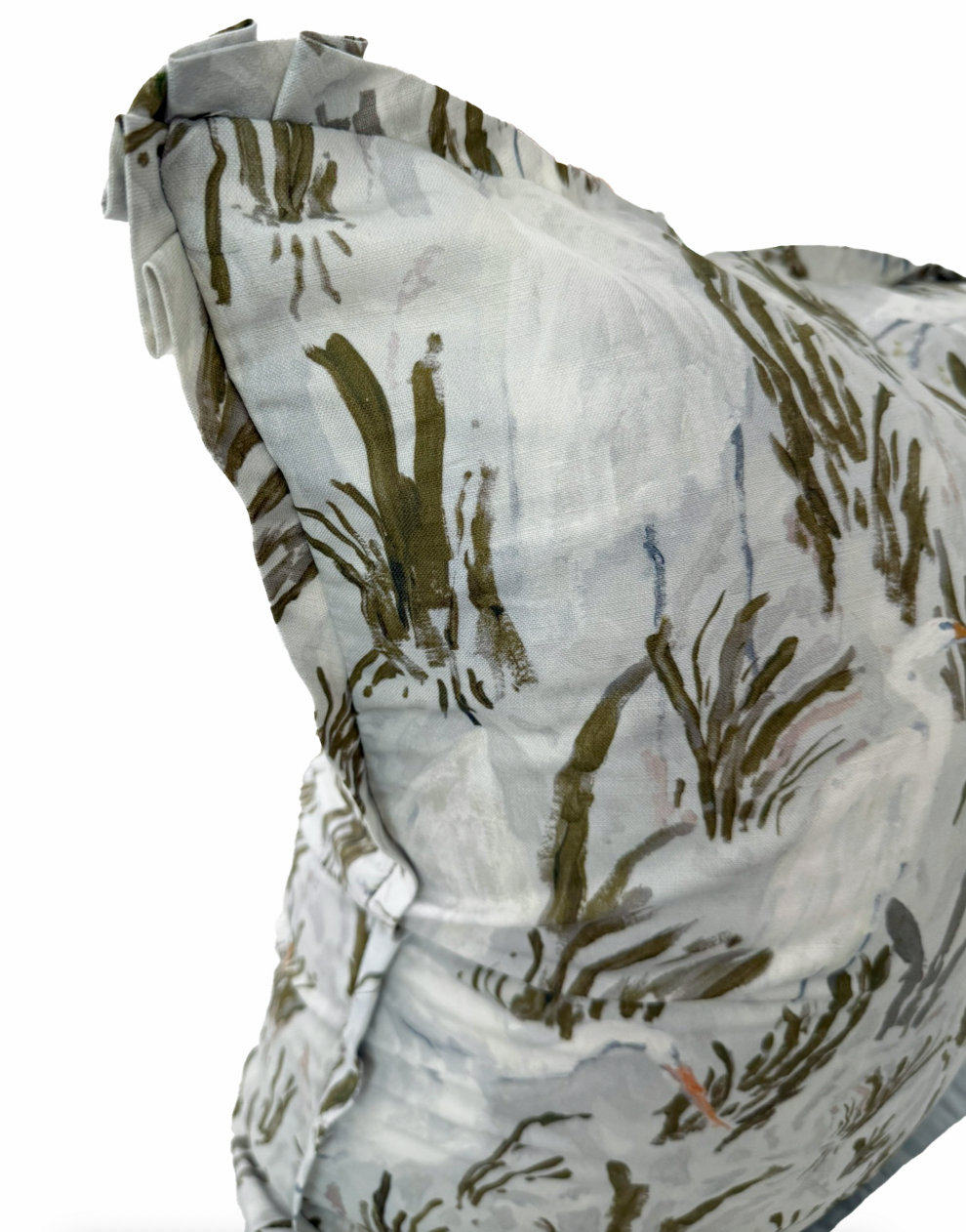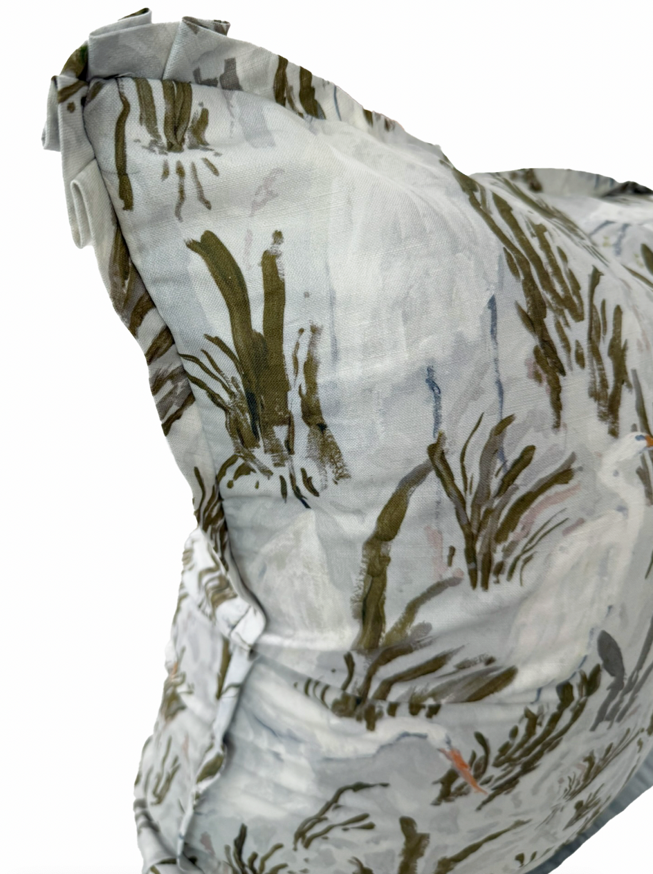 Small Lumbar Egrets Pillow Cover- Self Flange w/ Green Tick Back