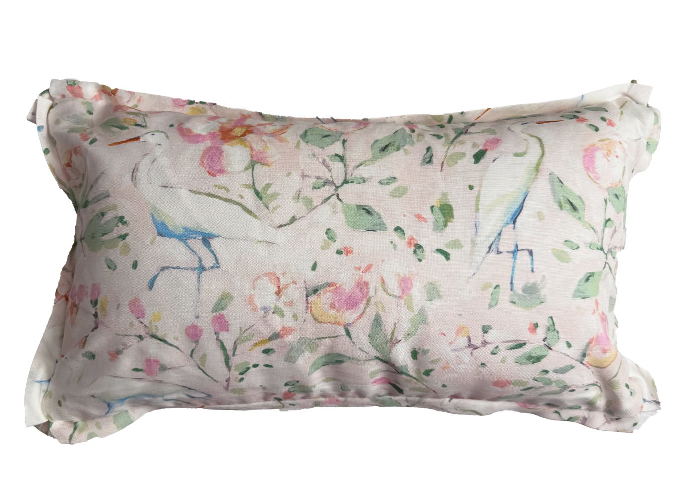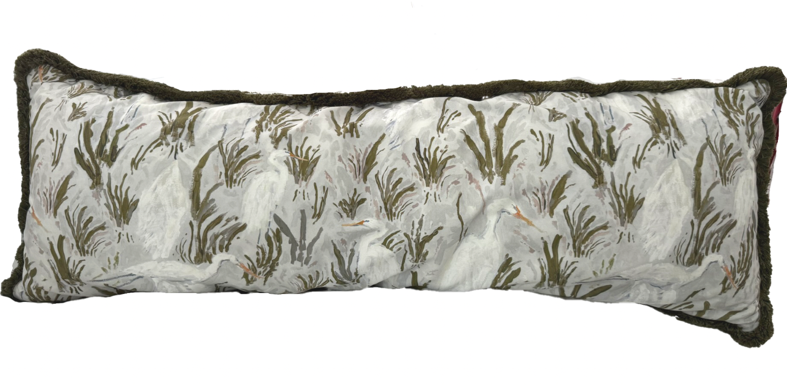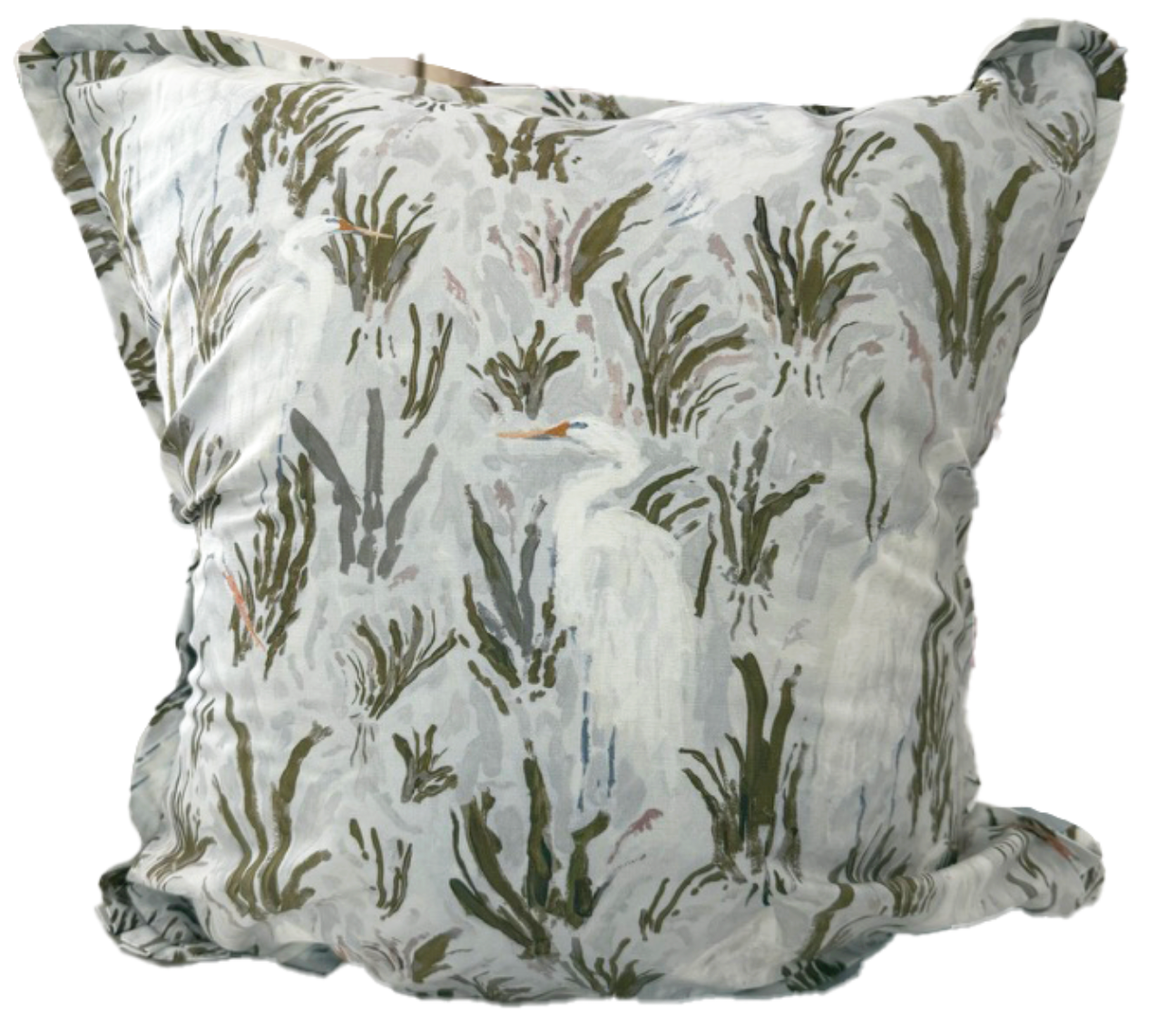 Small Lumbar Egrets Pillow Cover- Self Flange w/ Green Tick Back