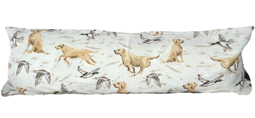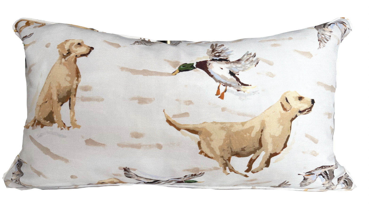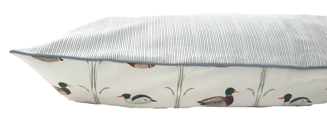 Large Lumbar Ducks Pillow Cover- Slate Piping, Navy Tick Back