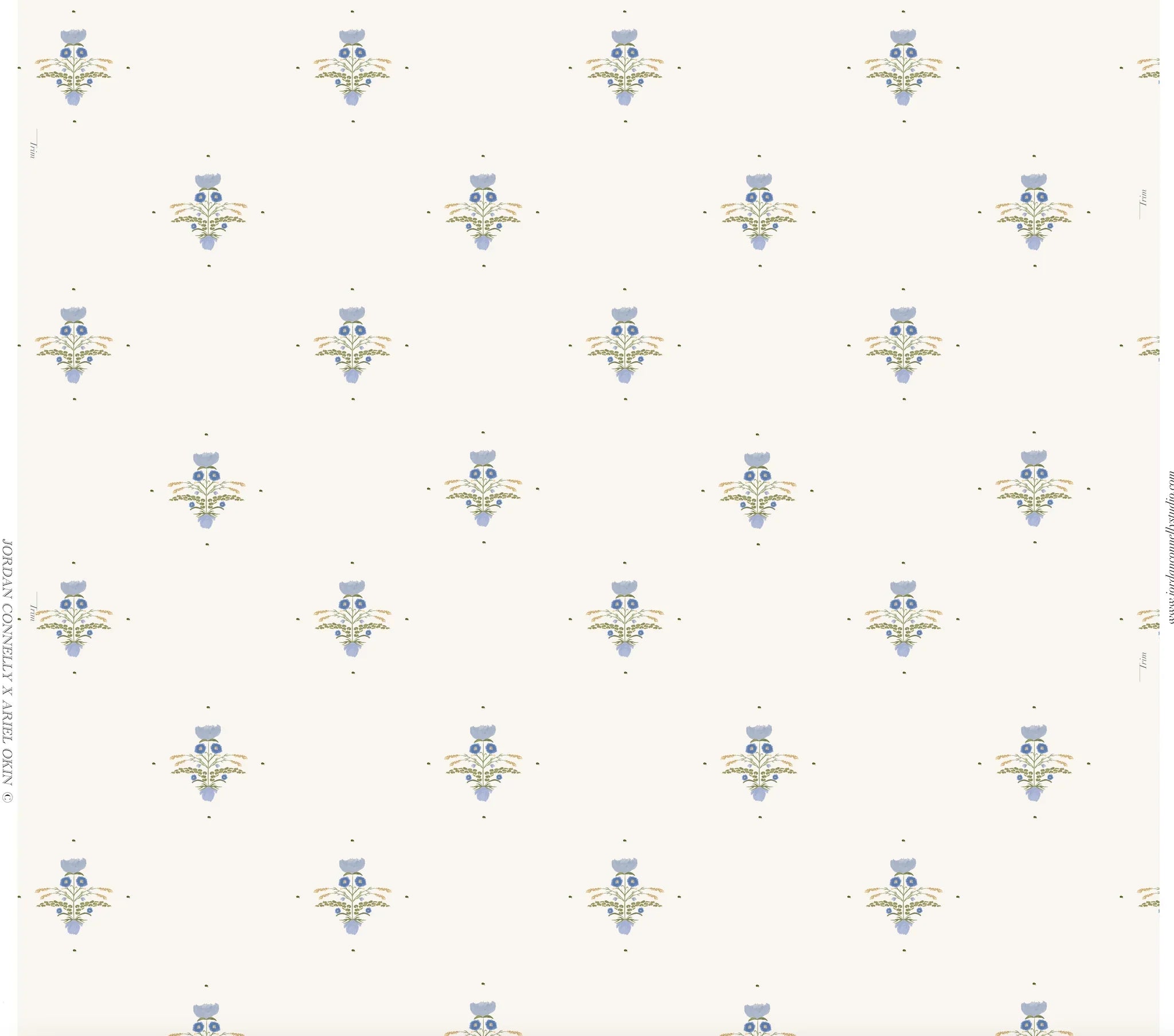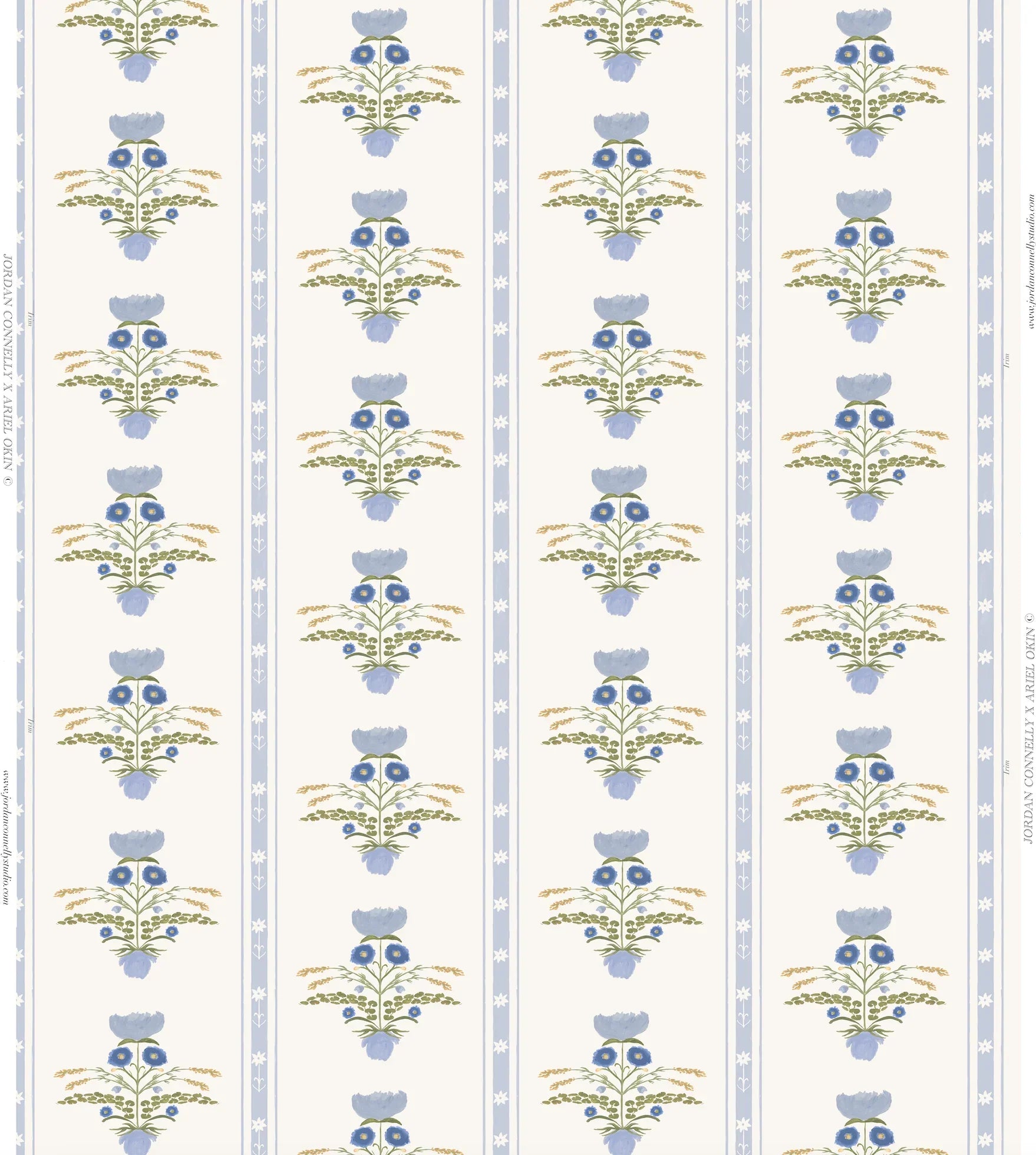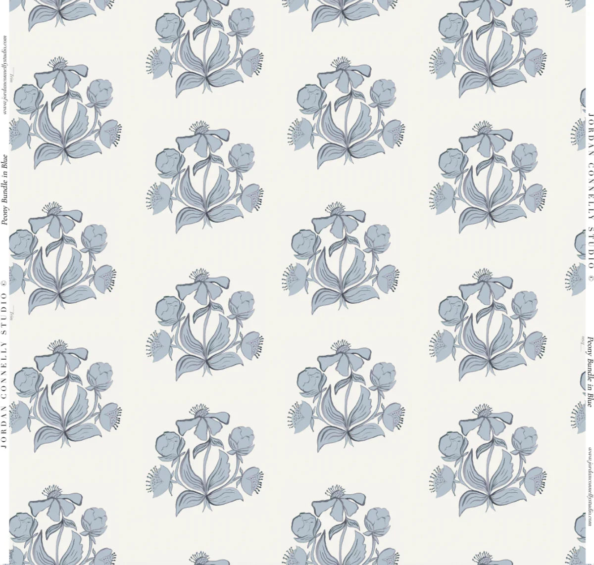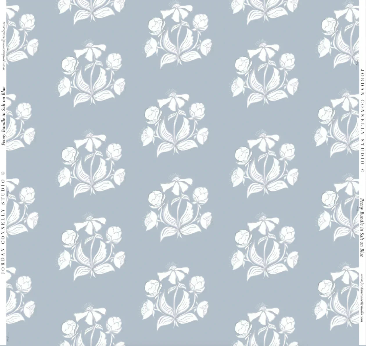 Peony Bundle in Salt on Blue Fabric SWATCH