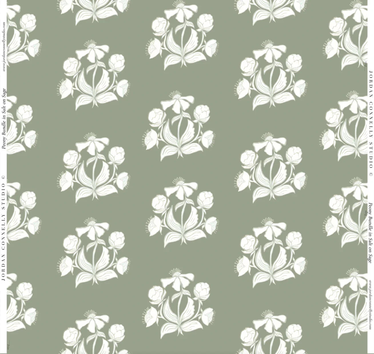Peony Bundle in Salt on Sage Fabric SWATCH