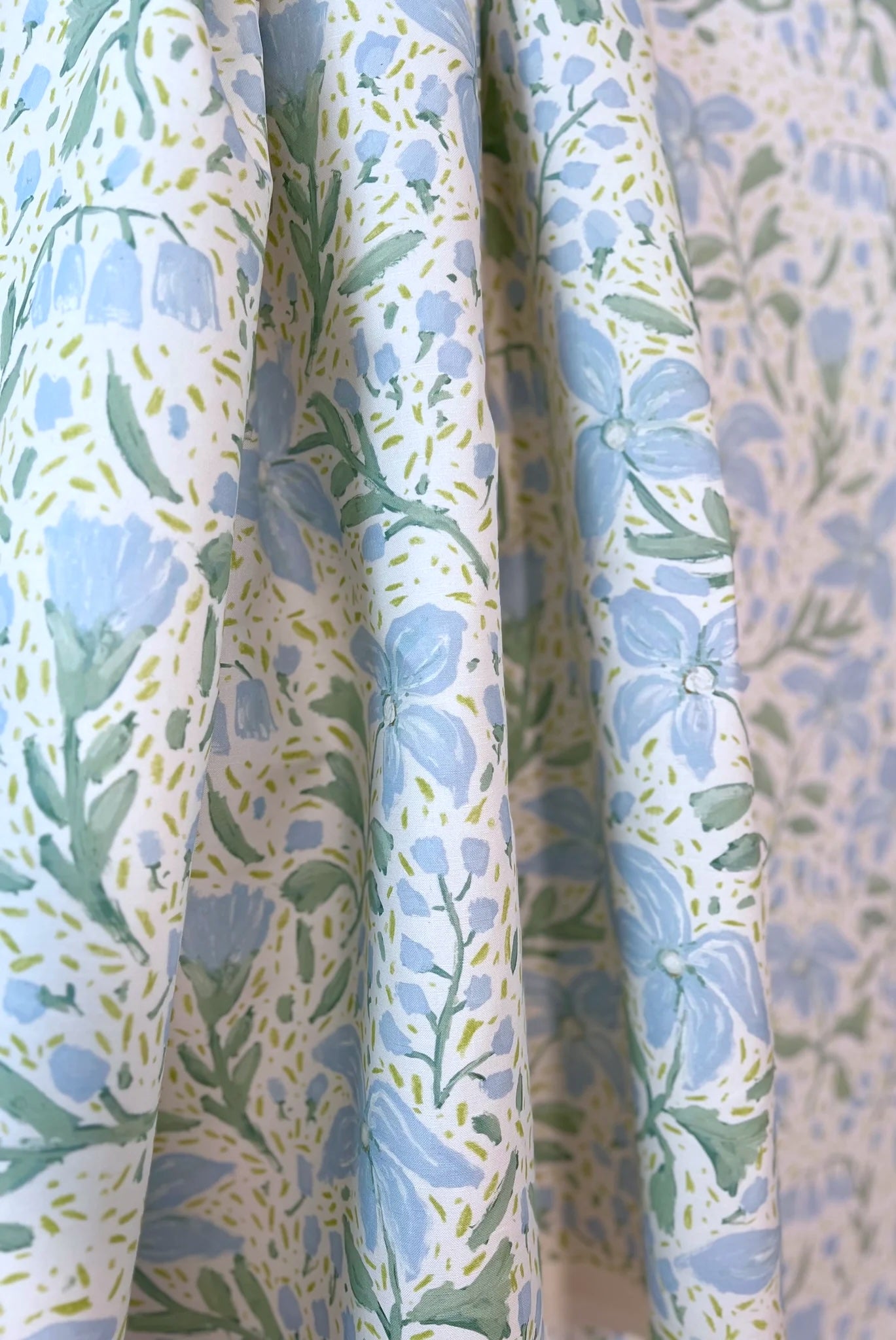 This hand-painted fabric design by Jordan Connelly is digitally printed in the USA using eco-friendly inks on linen-cotton blend textiles. Each pattern captures painterly detail and thoughtful storytelling inspired by nature and place.
