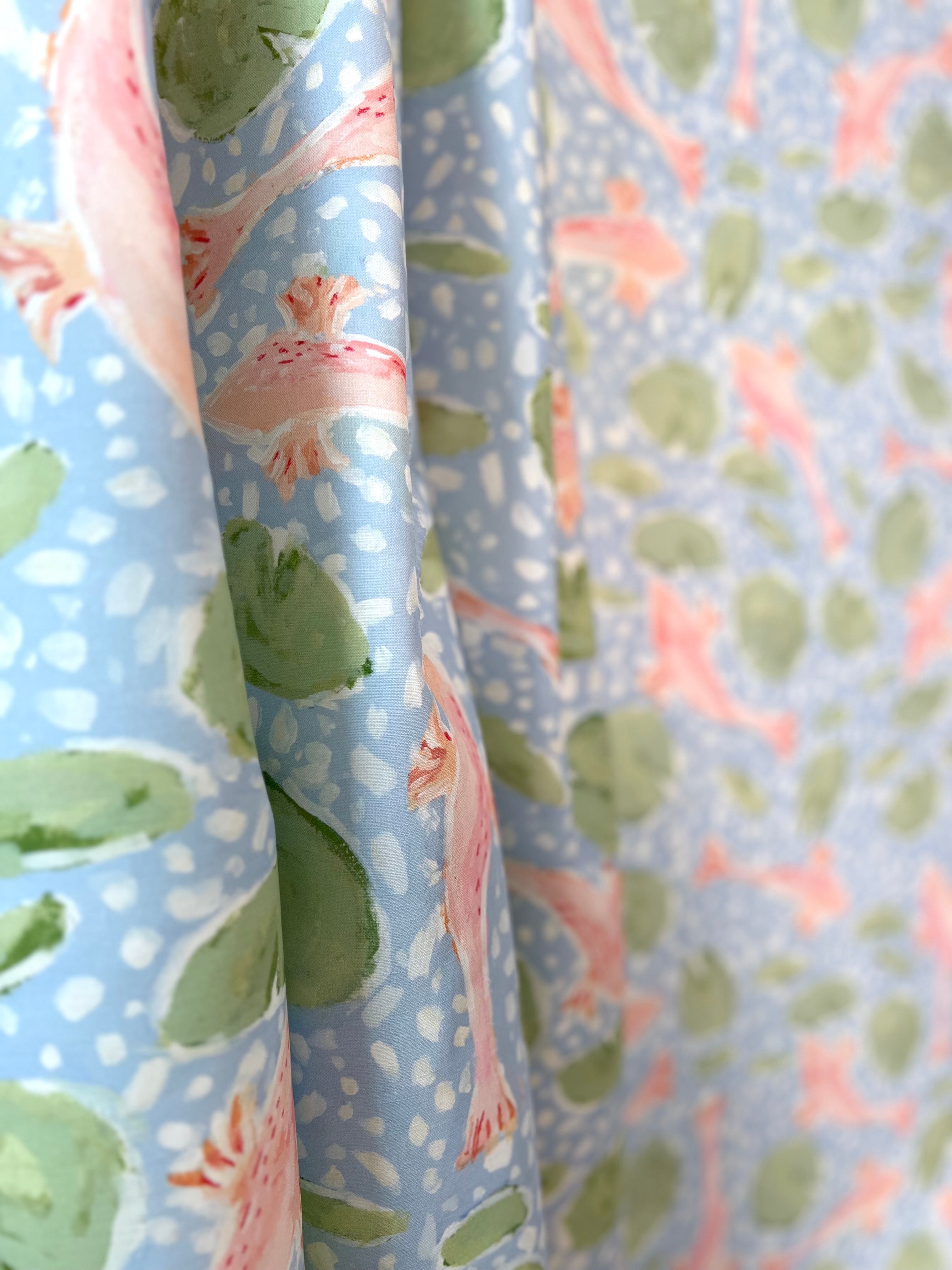 This hand-painted fabric design by Jordan Connelly is digitally printed in the USA using eco-friendly inks on linen-cotton blend textiles. Each pattern captures painterly detail and thoughtful storytelling inspired by nature and place.