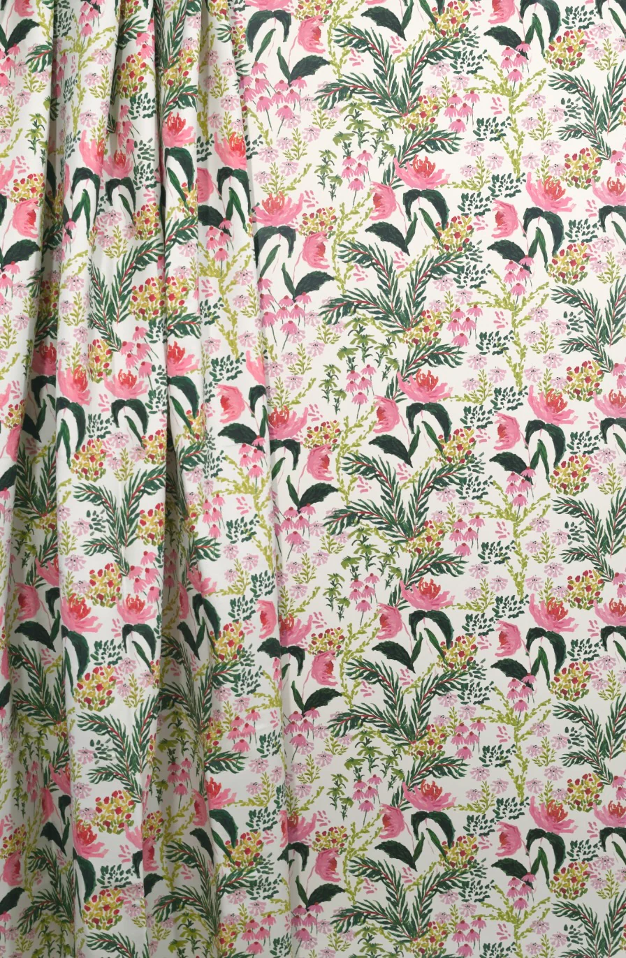 This hand-painted fabric design by Jordan Connelly is digitally printed in the USA using eco-friendly inks on linen-cotton blend textiles. Each pattern captures painterly detail and thoughtful storytelling inspired by nature and place.