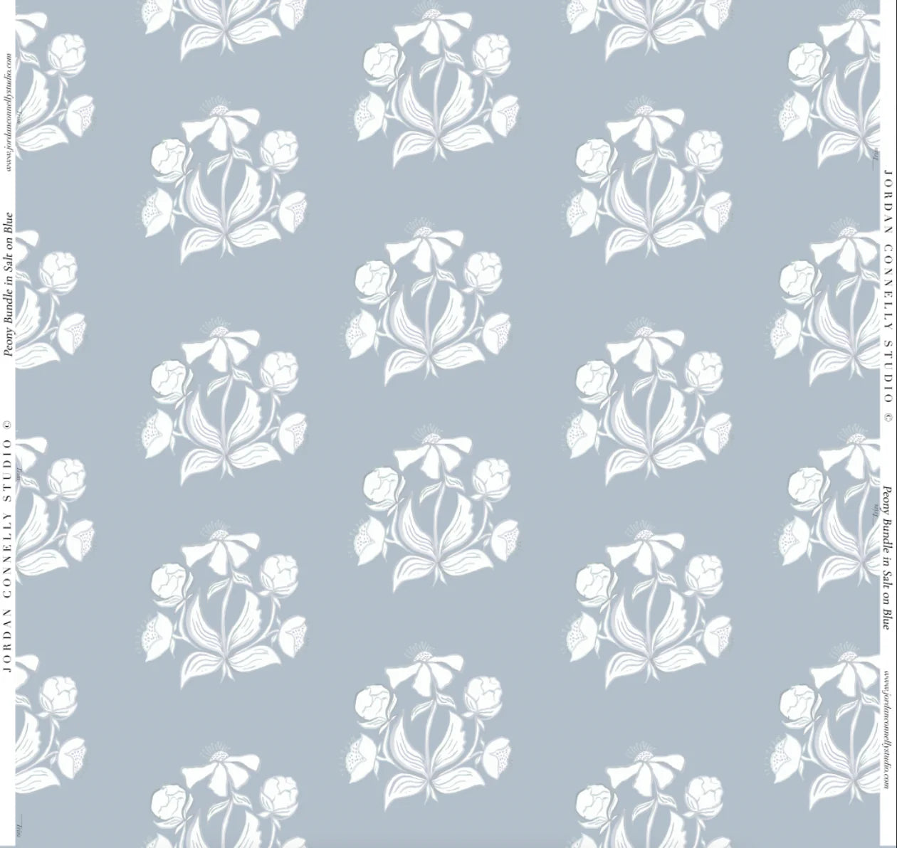 Peony Bundle in Salt on Blue- Fabric
