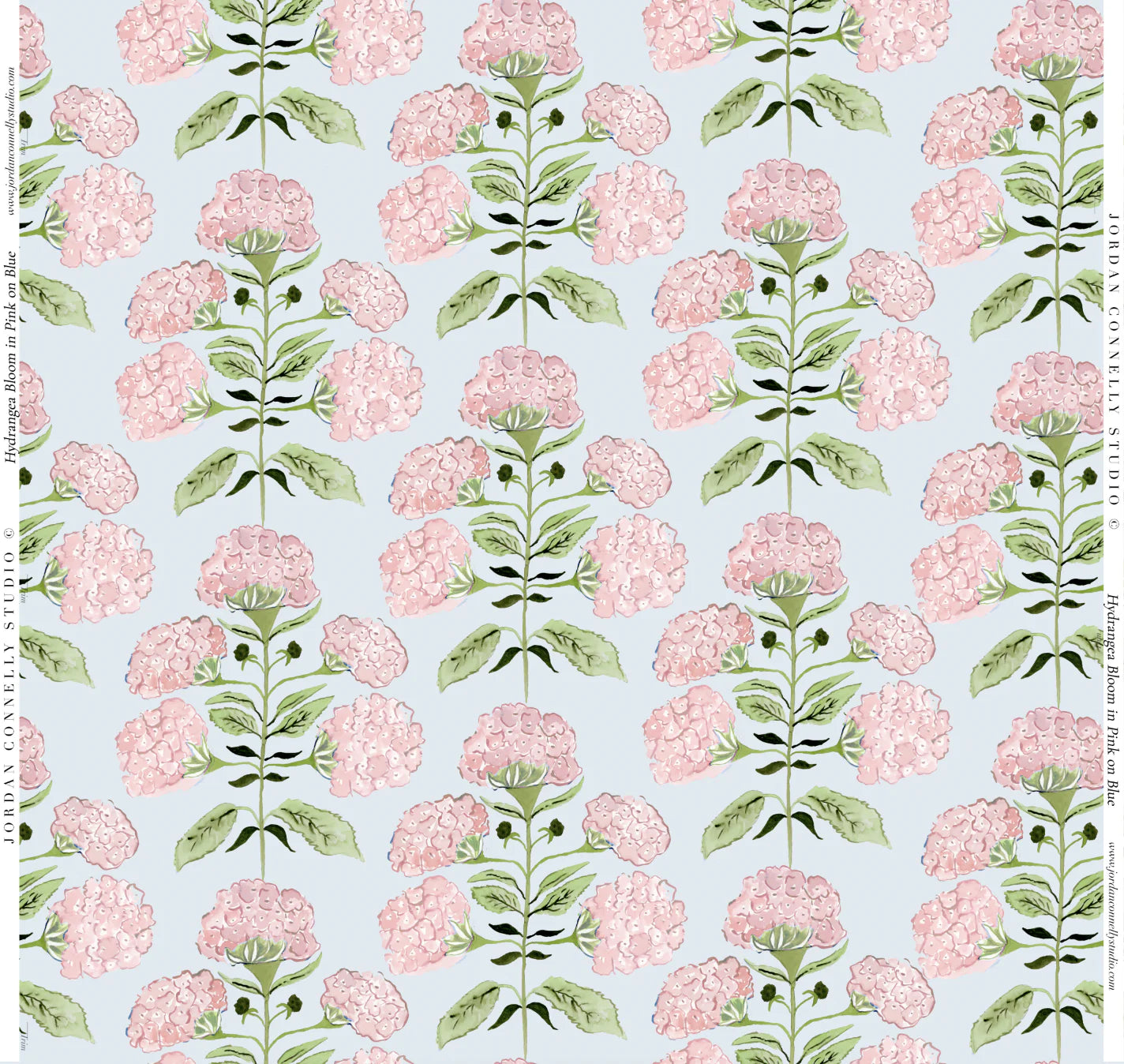Hydrangea Bloom in Pink on Blue- Fabric