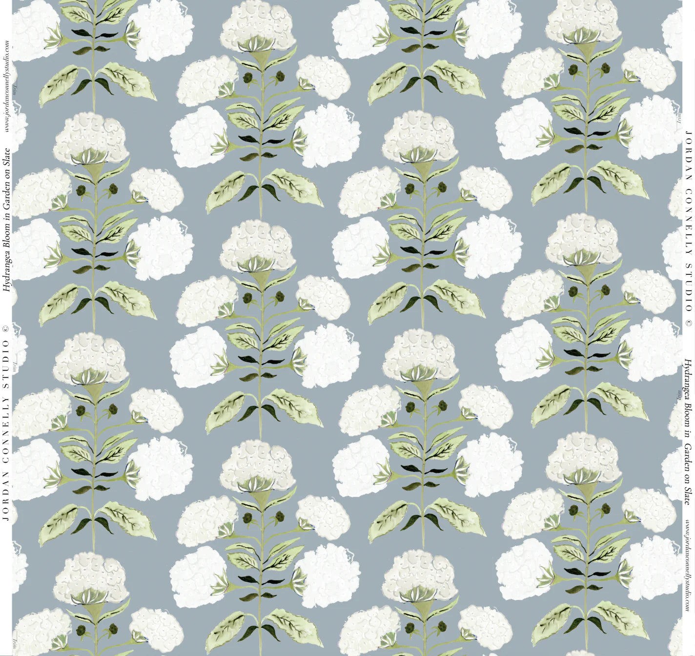 Hydrangea Bloom in Salt on Sage- Fabric