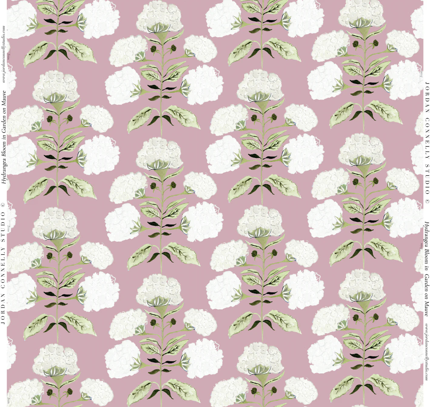 Hydrangea Bloom in Garden on Mauve- Fabric