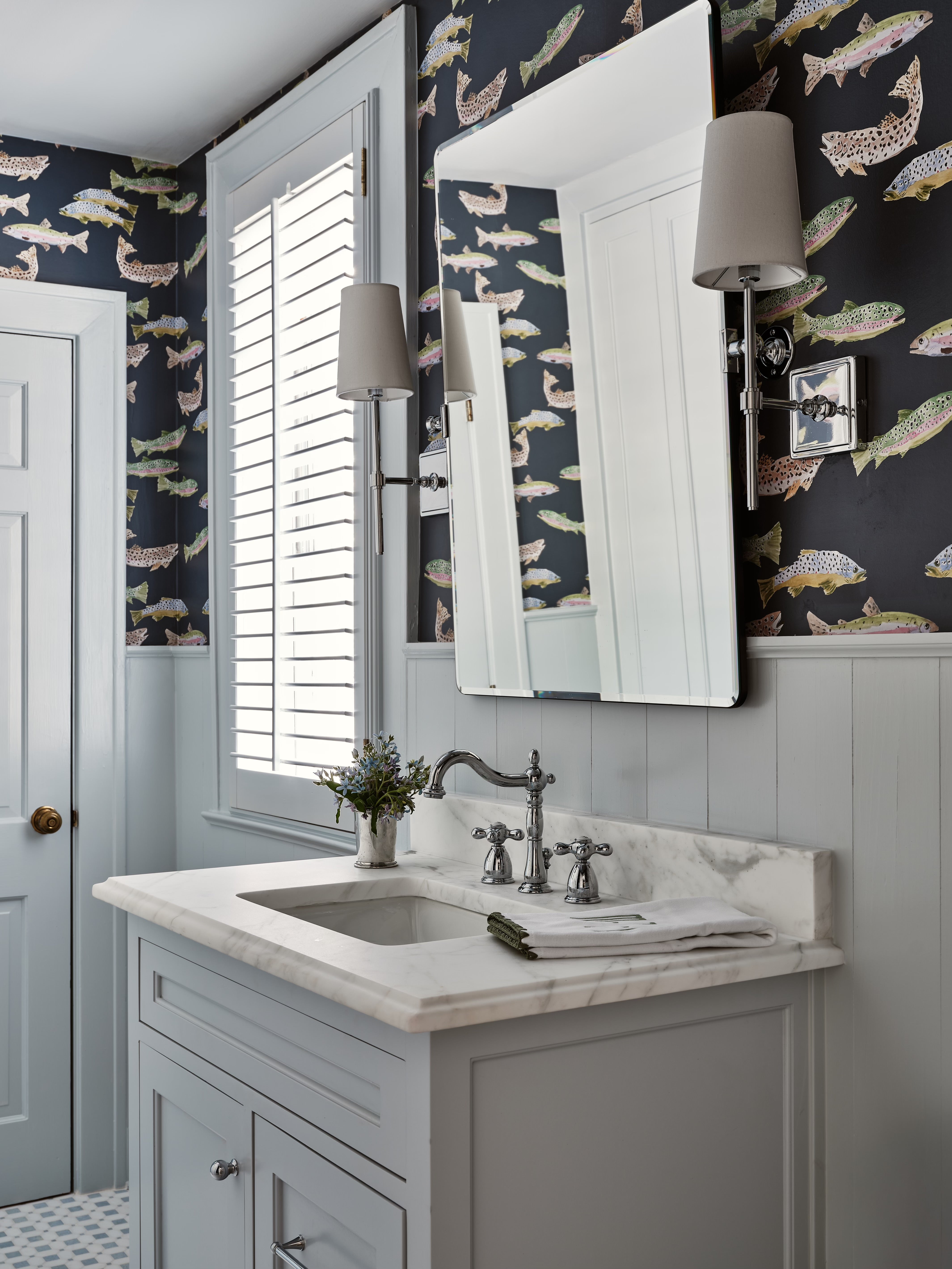Nicholas & Chocolate Banks in Grey Blue Wallpaper
