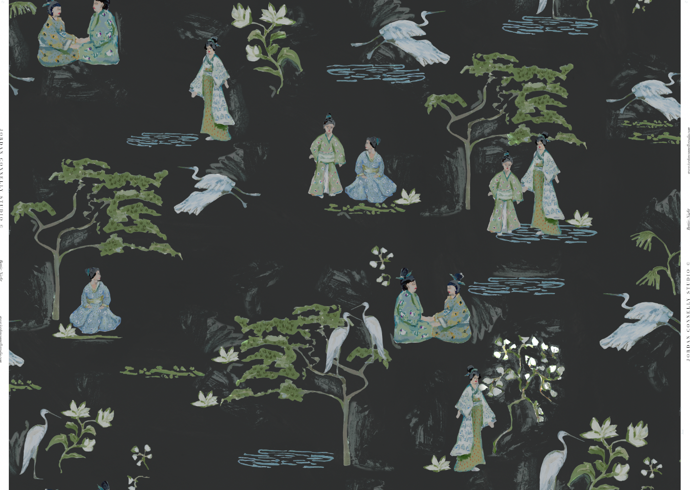 Beached Ladies for Sarah in Soft Green Wallpaper SWATCH