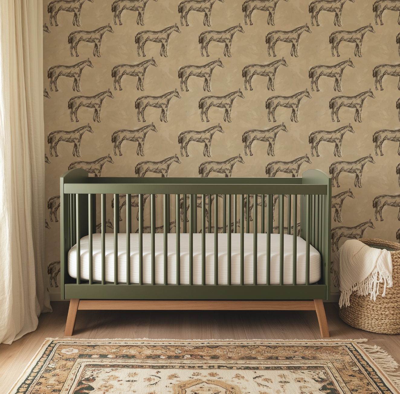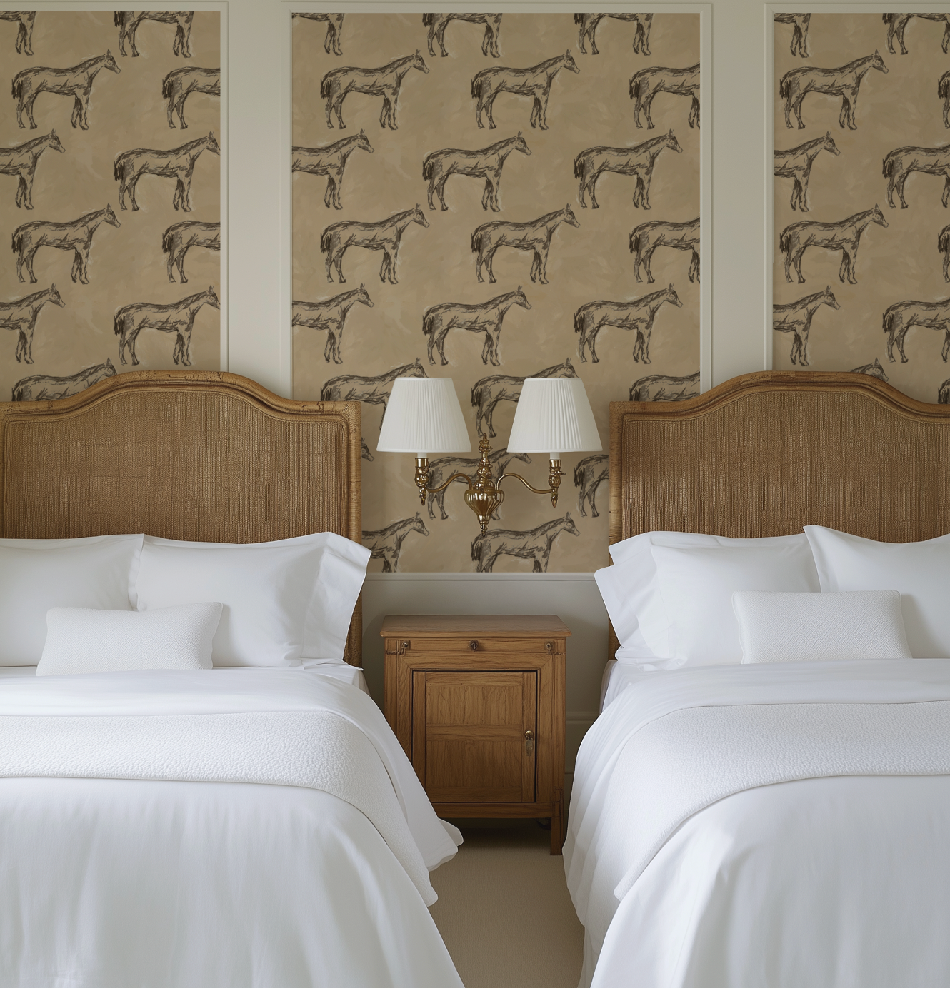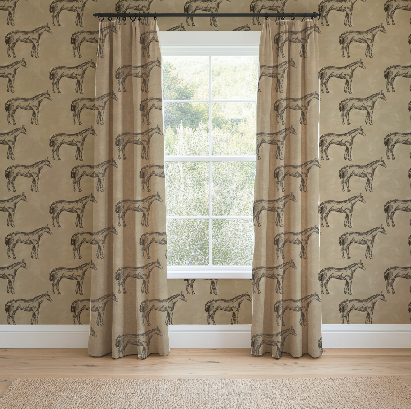 Antique Parchment Horse in Parchment Wallpaper