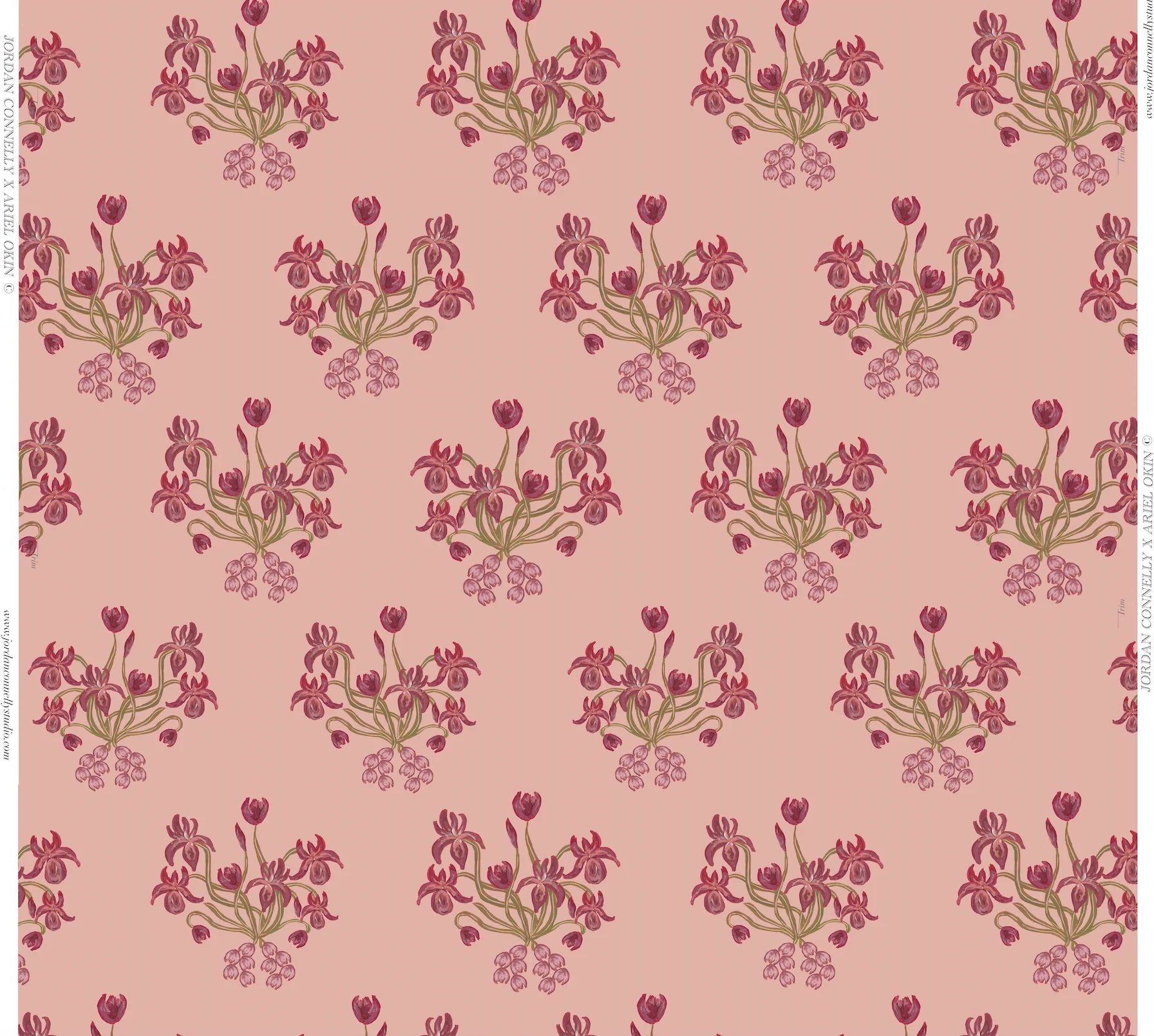 This hand-painted wallpaper design by Jordan Connelly is digitally printed in the USA using eco-friendly inks on flat matte paper. Each pattern captures painterly detail and thoughtful storytelling inspired by nature and place.