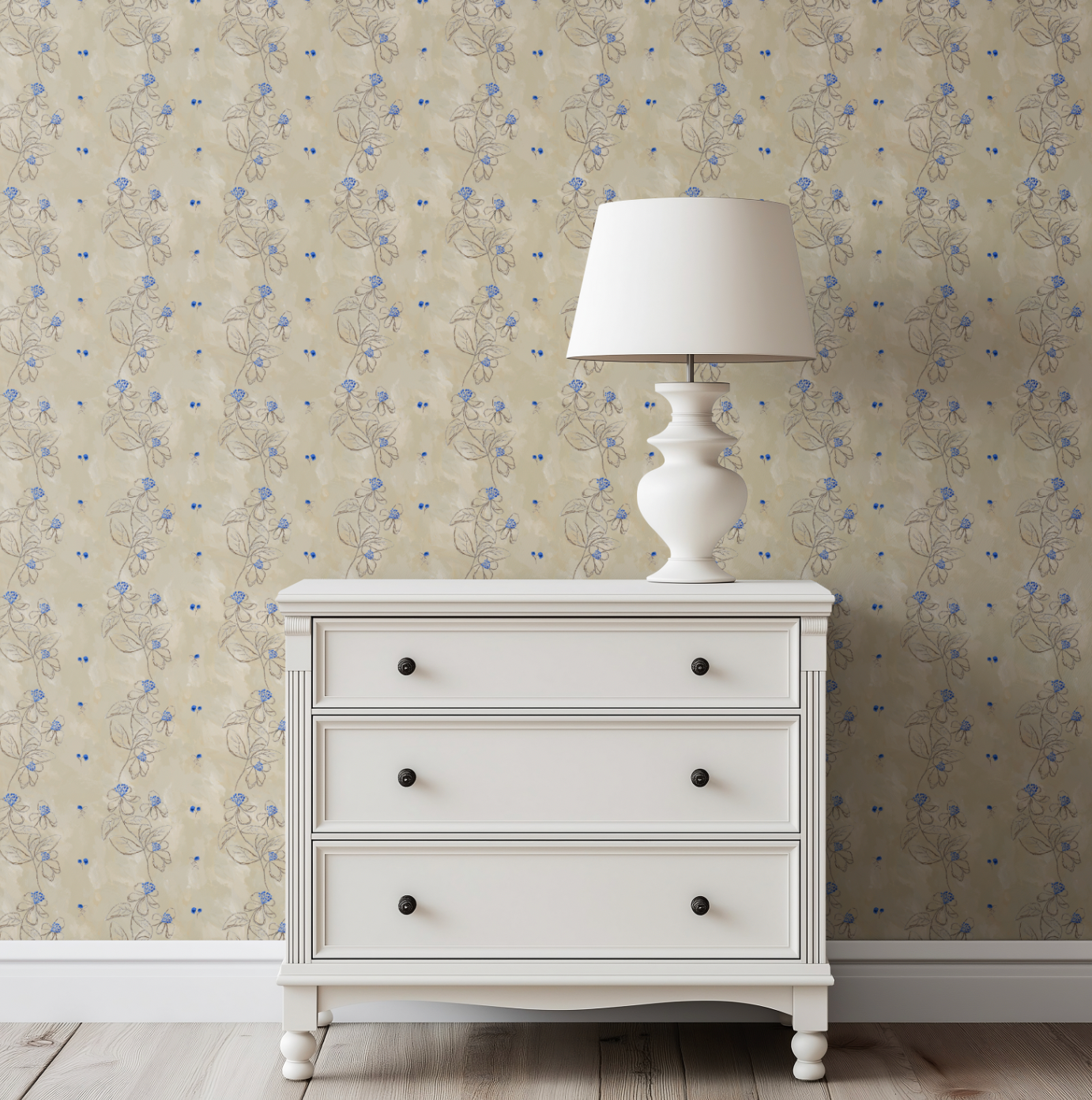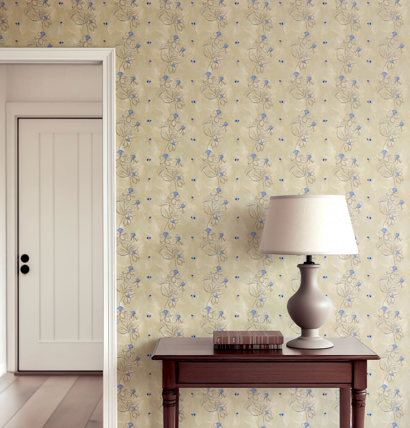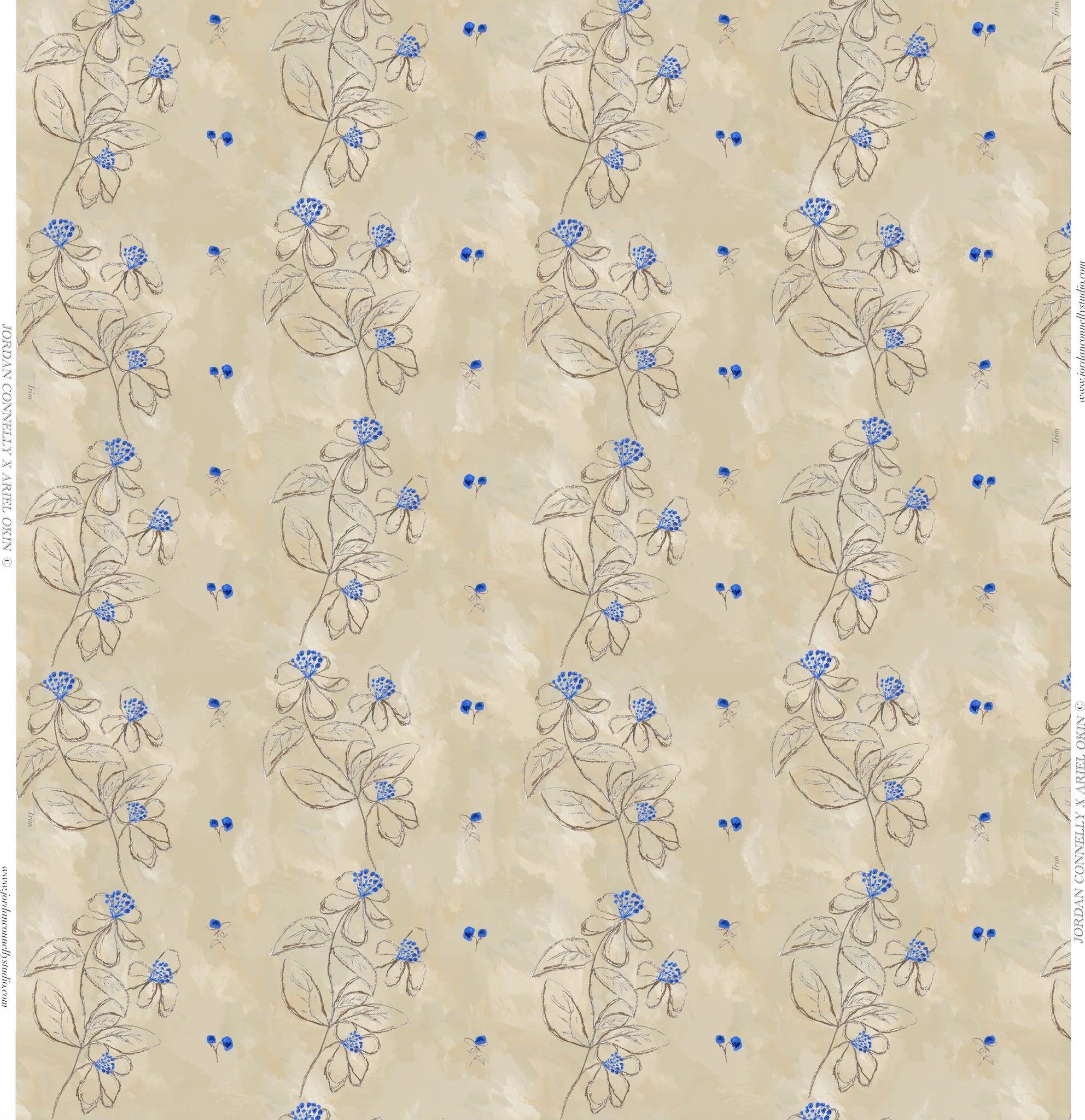 This hand-painted wallpaper design by Jordan Connelly is digitally printed in the USA using eco-friendly inks on flat matte paper. Each pattern captures painterly detail and thoughtful storytelling inspired by nature and place.