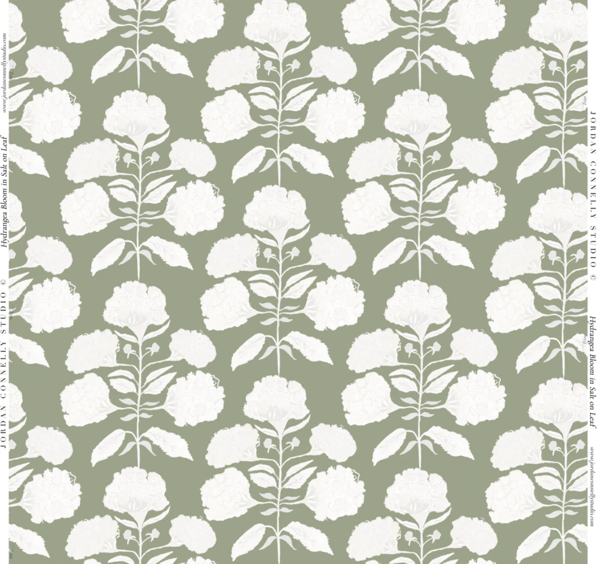 Hydrangea Bloom in Salt on Sage Wallpaper