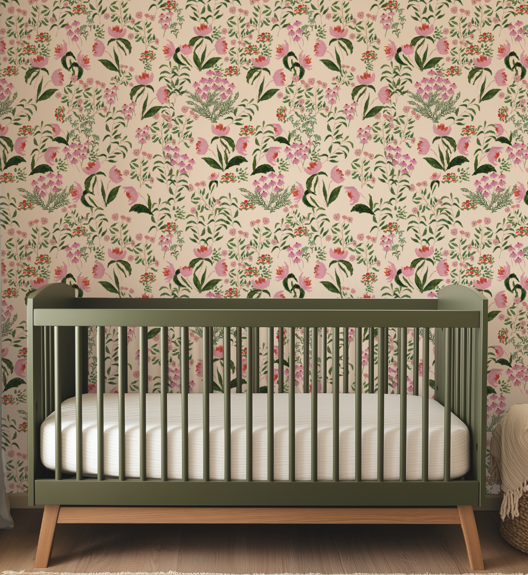 Wild French Garden in Blush Wallpaper