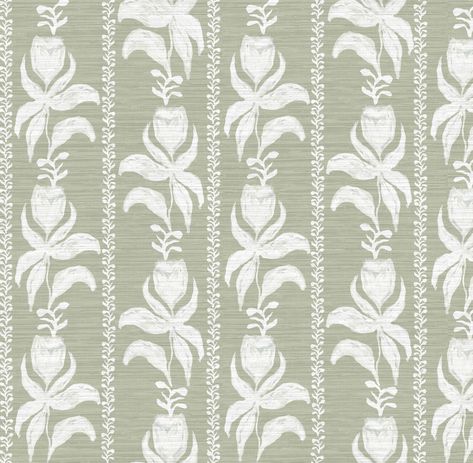 Blocked Tulips in Chartreuse Grasscloth Wallpaper