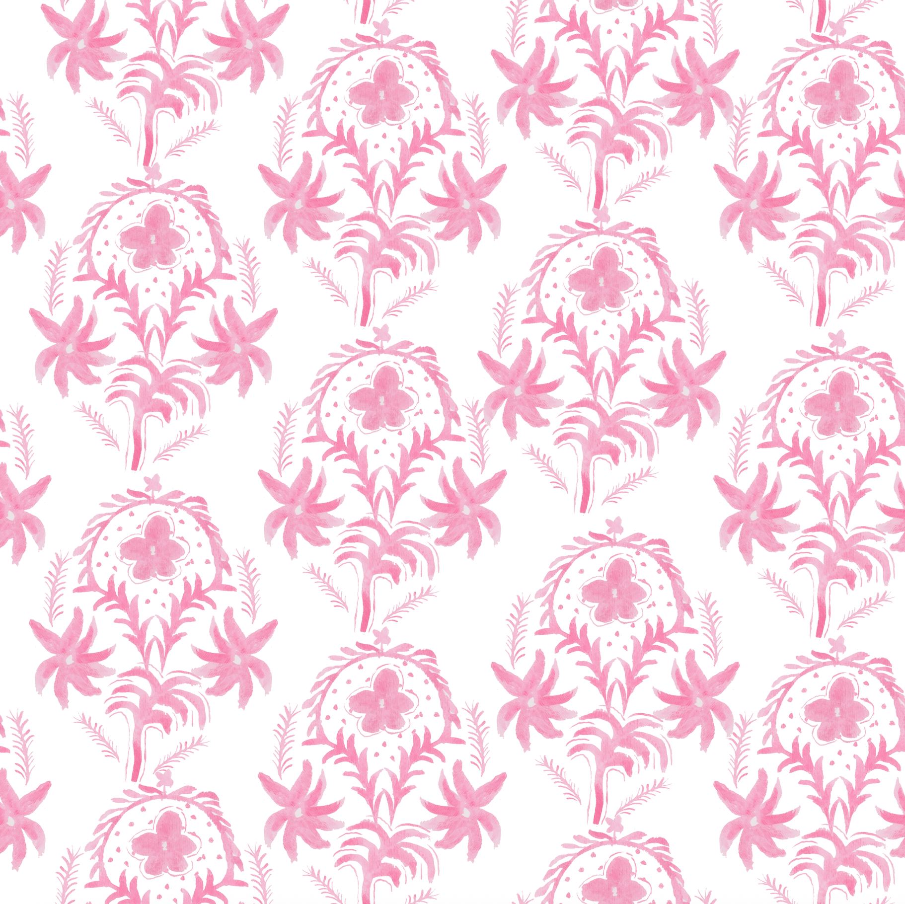 Blocked Tulips in Rose Grasscloth Wallpaper