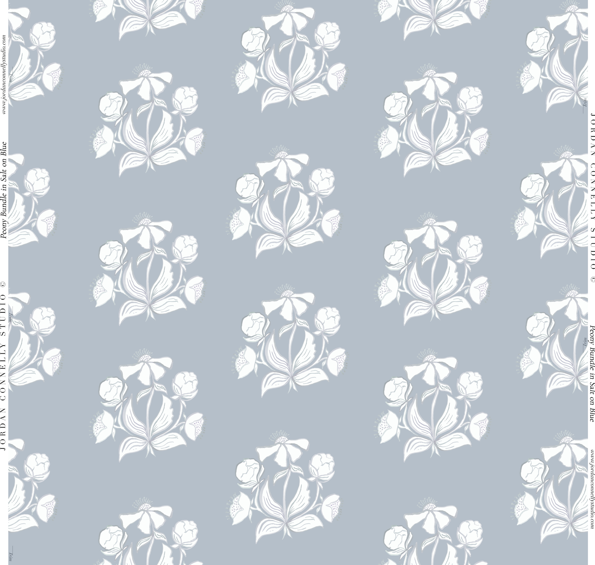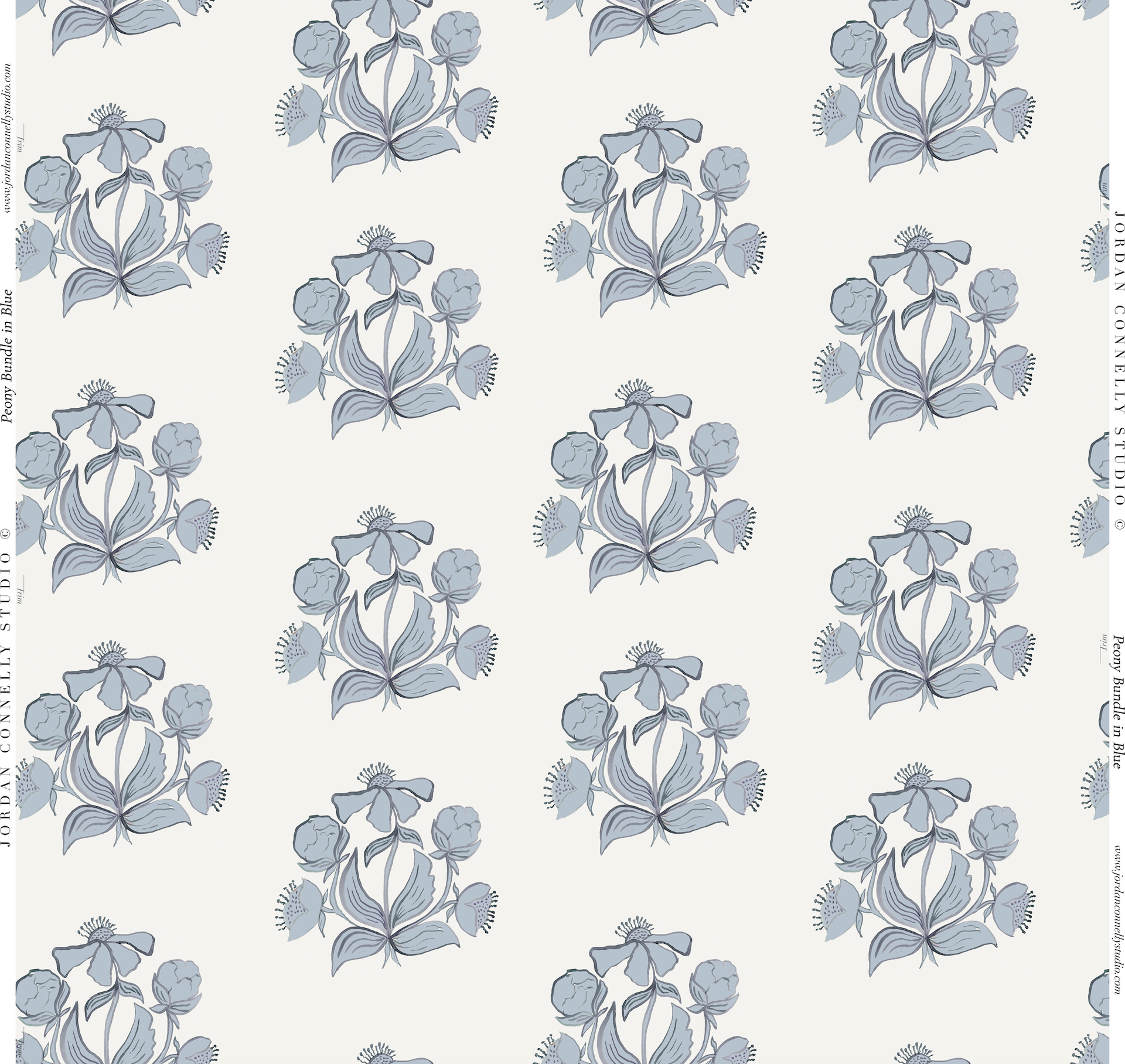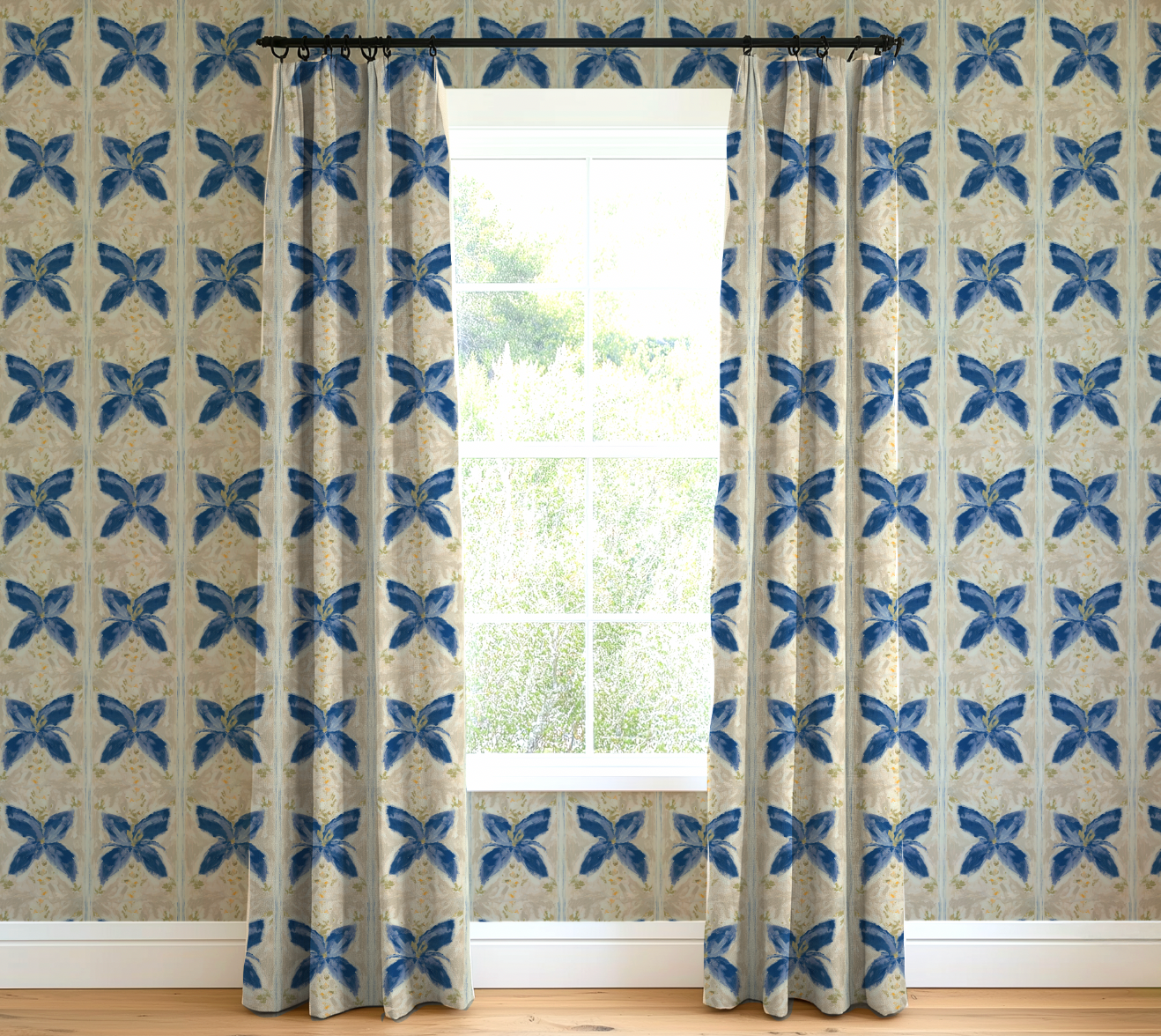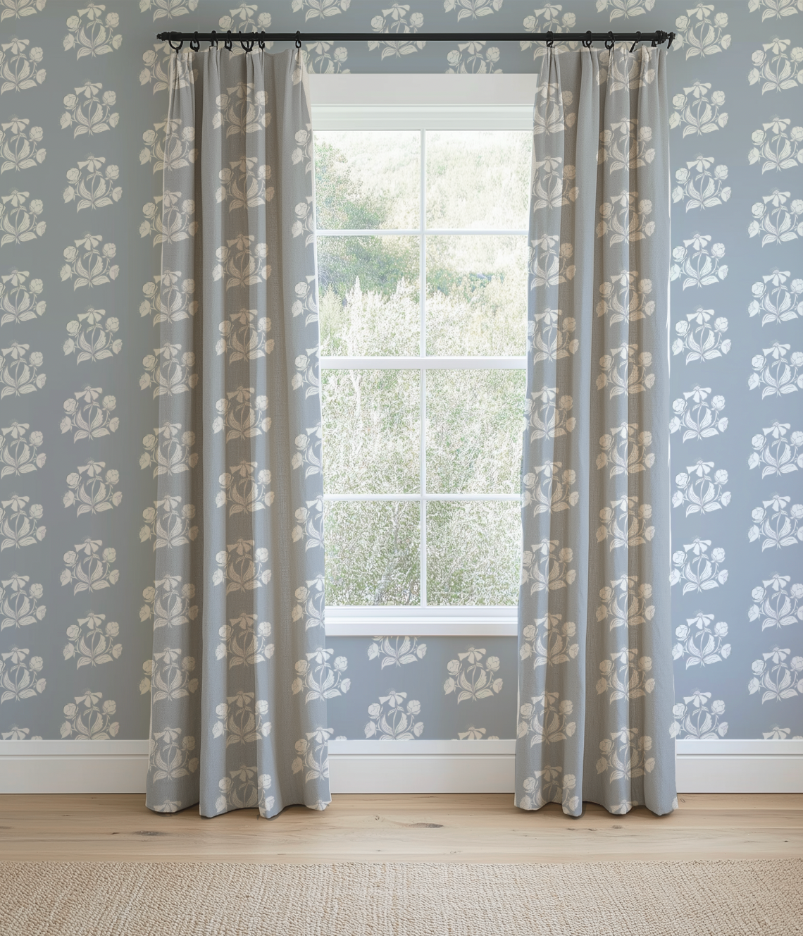 Blocked Tulips in Blue Grasscloth Wallpaper