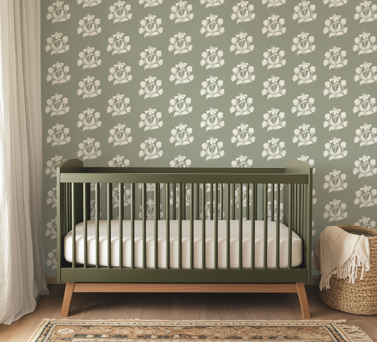 Blocked Tulips in Natural Grasscloth Wallpaper