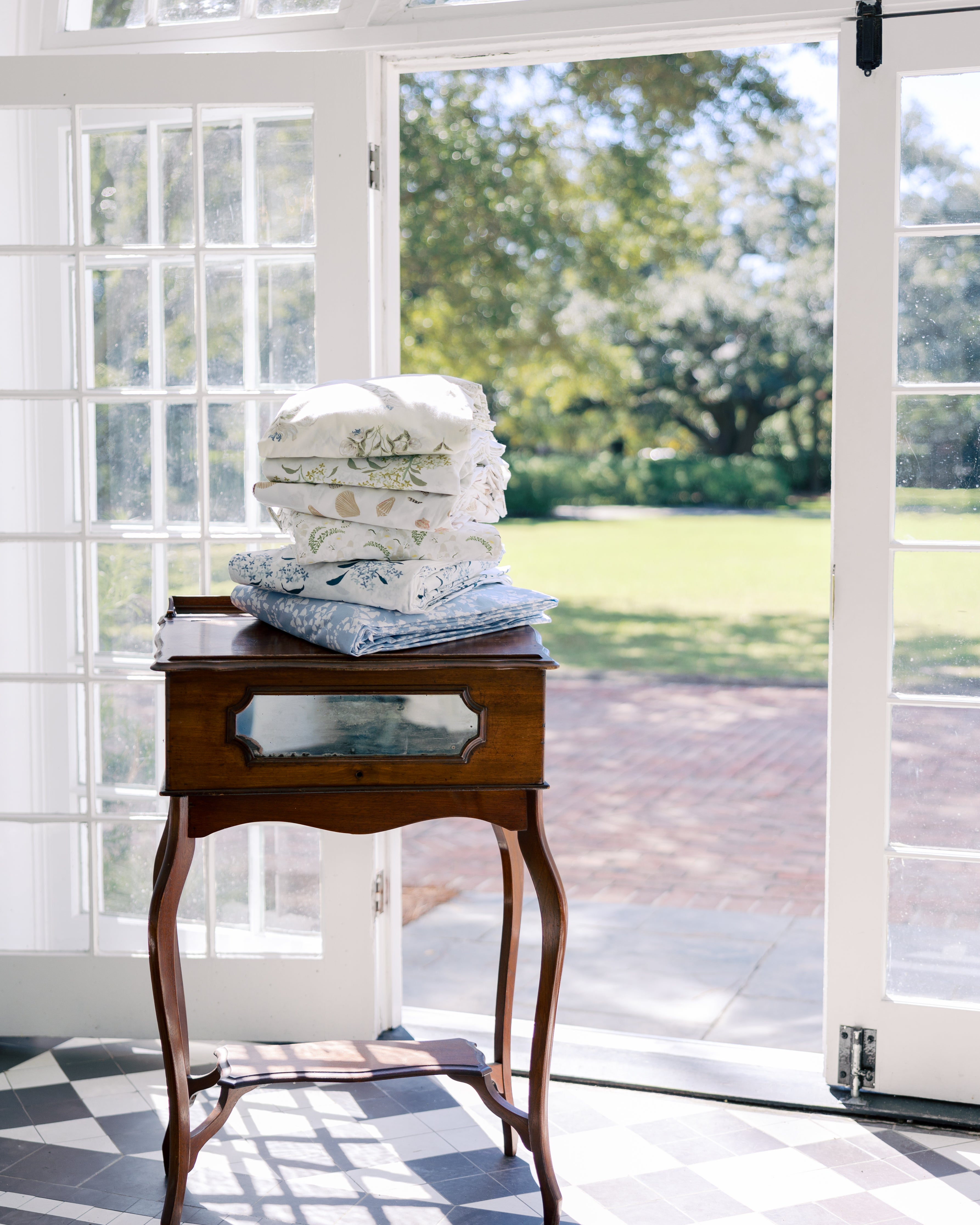 Our bedding line starts with Jordan Connelly’s hand-painted artwork, created in her Charleston studio where rivers, tides, and coastal light inspire every design. Each pattern brings nature’s movement to life, infusing spaces with warmth, color, and timeless elegance.