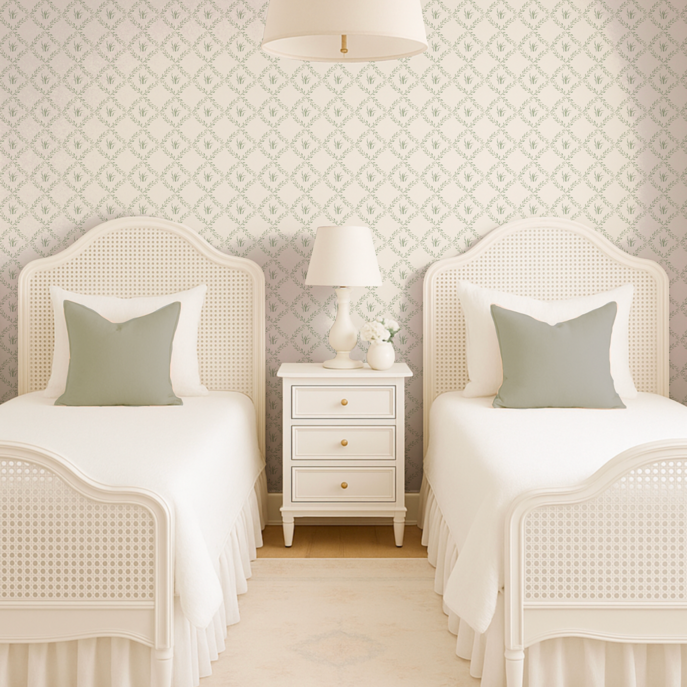 This hand-painted wallpaper design by Jordan Connelly is digitally printed in the USA using eco-friendly inks on flat matte paper. Each pattern captures painterly detail and thoughtful storytelling inspired by nature and place.