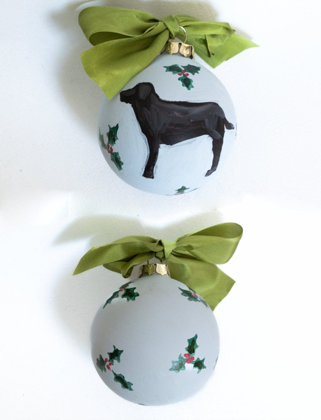 This is a 3x3" acrylic on ceramic ornament that comes varnished in gloss and adorned with a silk ribbon. Ornaments come in individual boxes for safe keeping.
